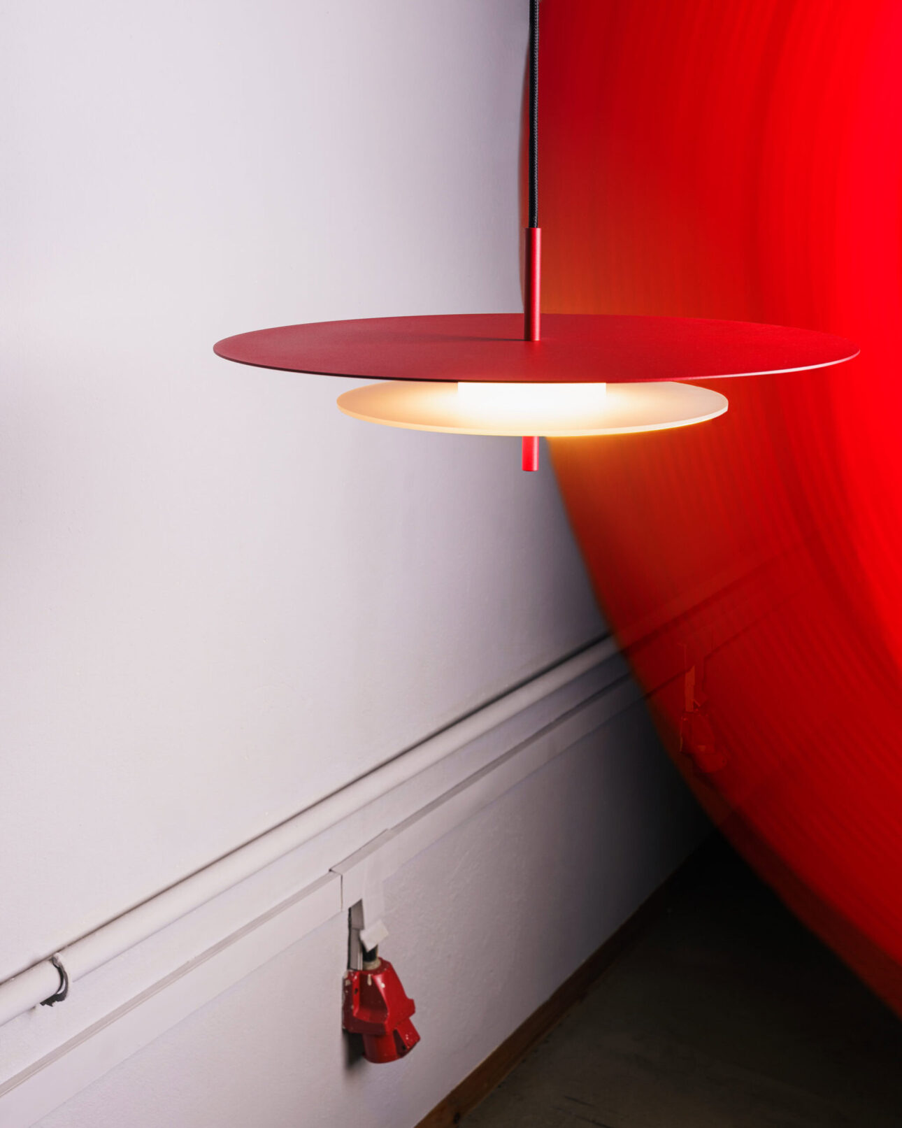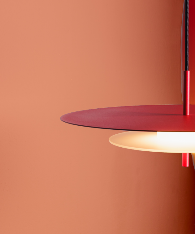 Flat aluminium ceiling rose – powder-coated in the lamp’s colour