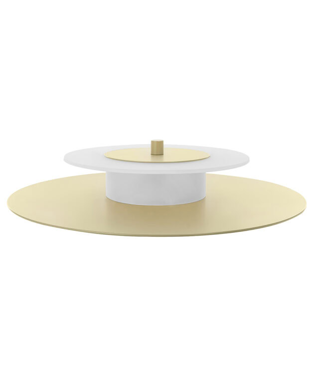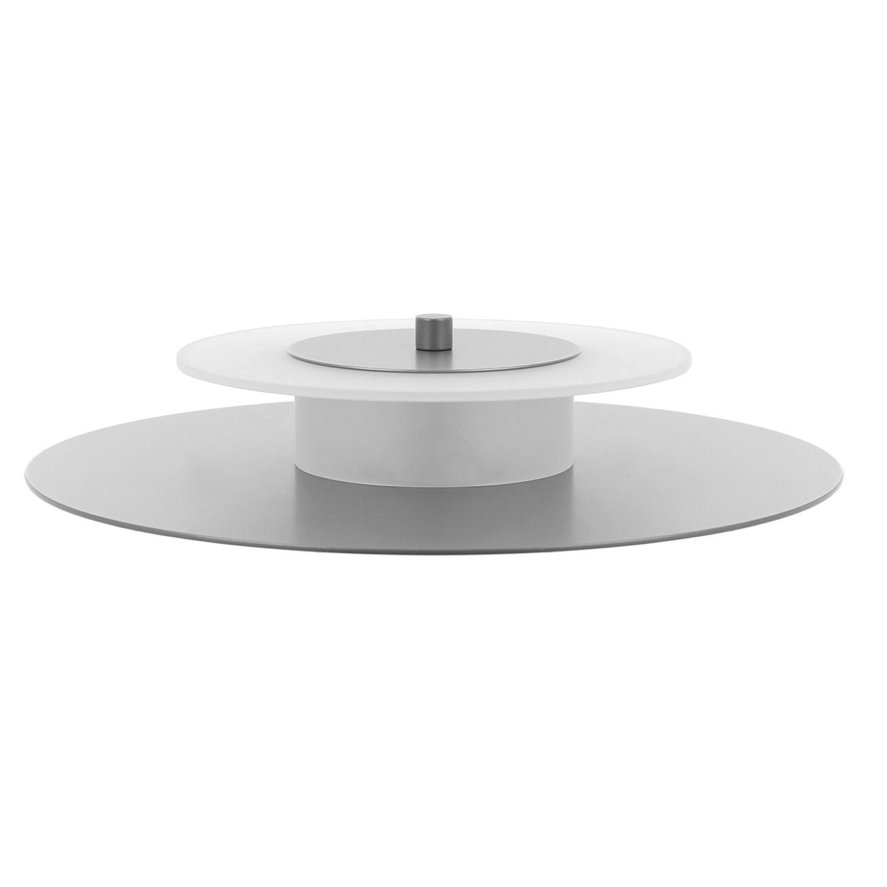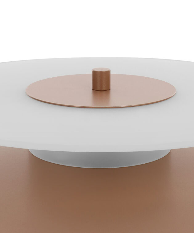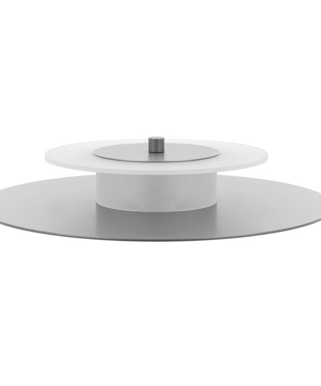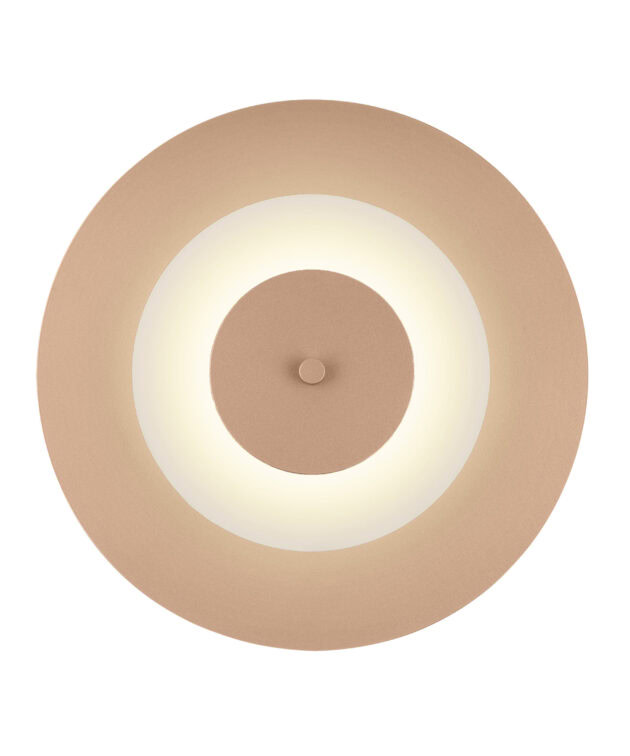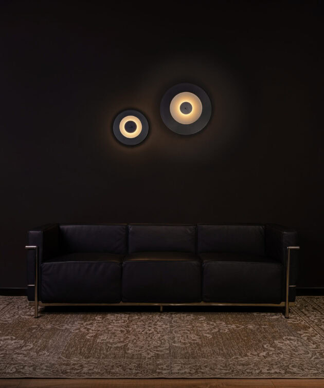 Aeroplan Wall is a modern wall light based on three contrasting circles of aluminium and frosted glass. The main powder-coated aluminium disc pairs with a smaller glass element, while discreet aluminium connectors emphasise its precise, minimalist form. On the wall, the lamp creates a graphic composition – subtle, yet full of character.