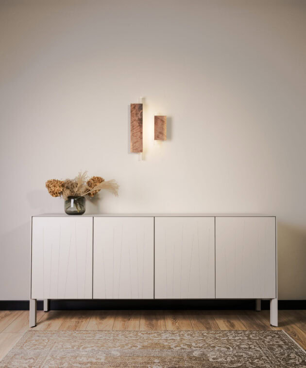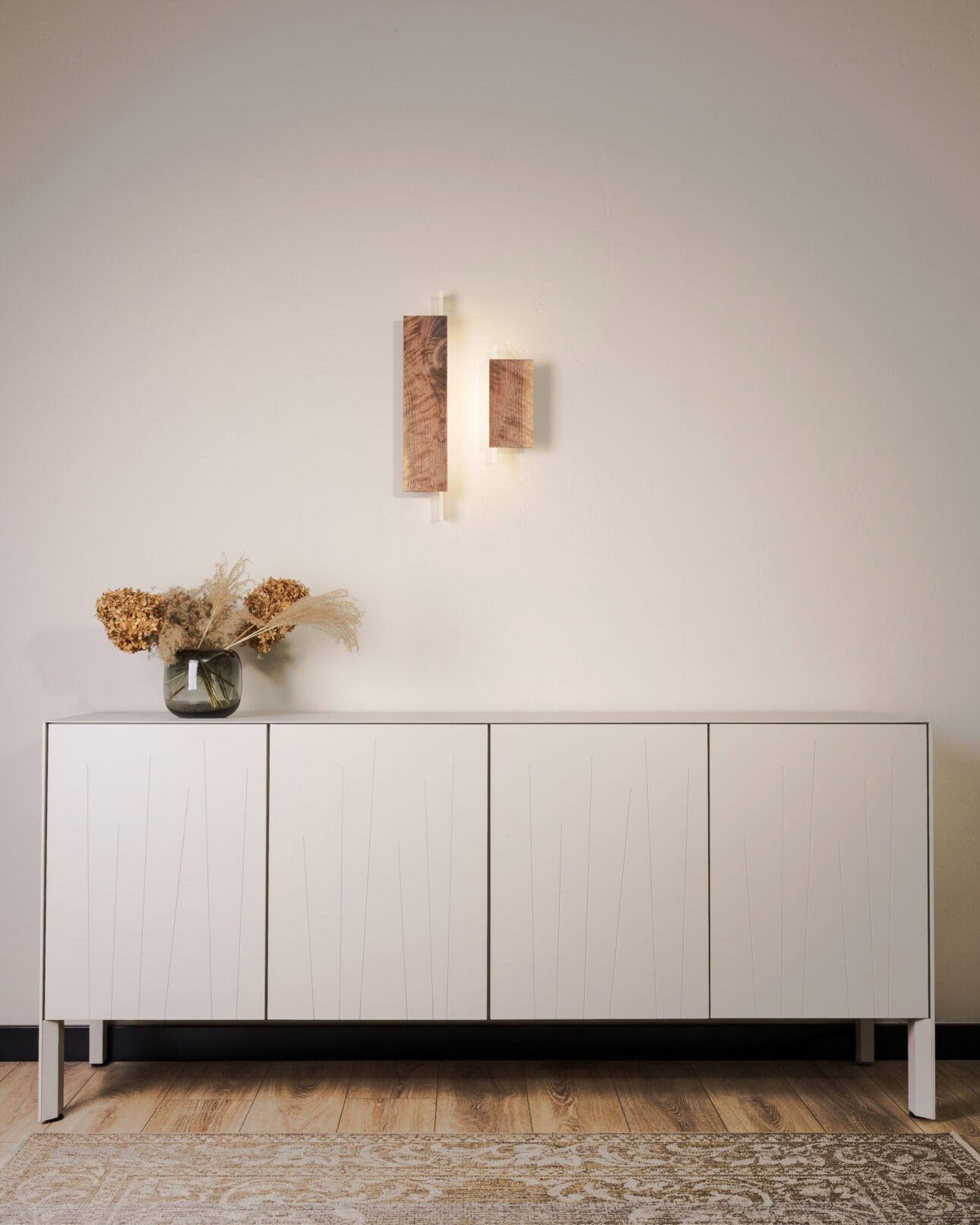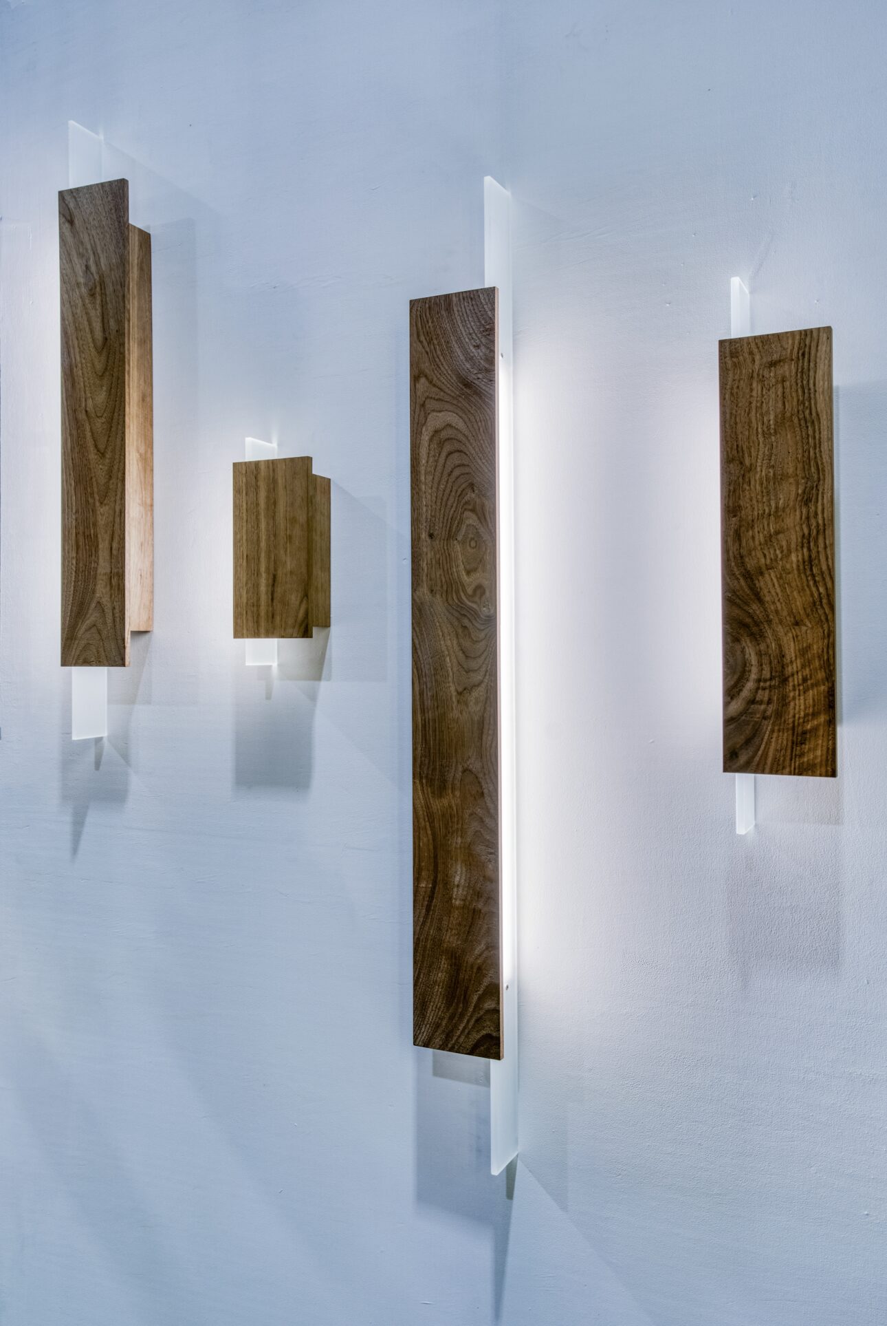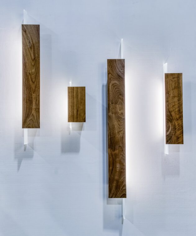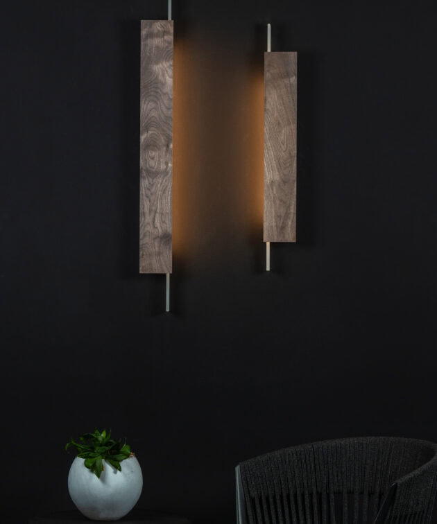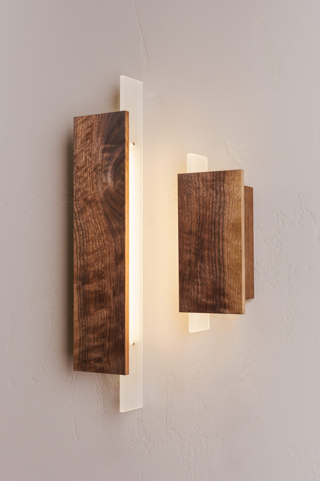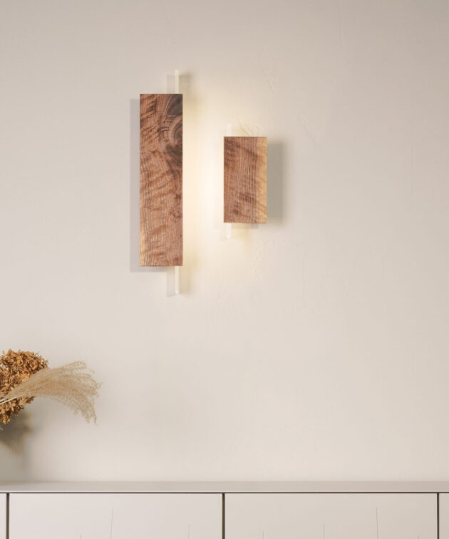 Blaze is a wall lamp that combines the solidity of natural American walnut wood with the soft diffusion of frosted glass. Its geometric form and precise proportions make it a perfect complement to modern, minimalist interiors – both residential and commercial.