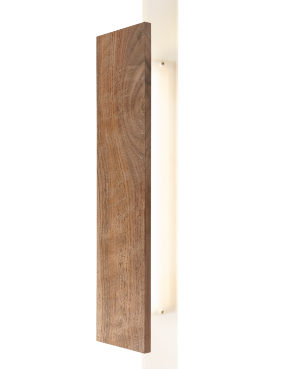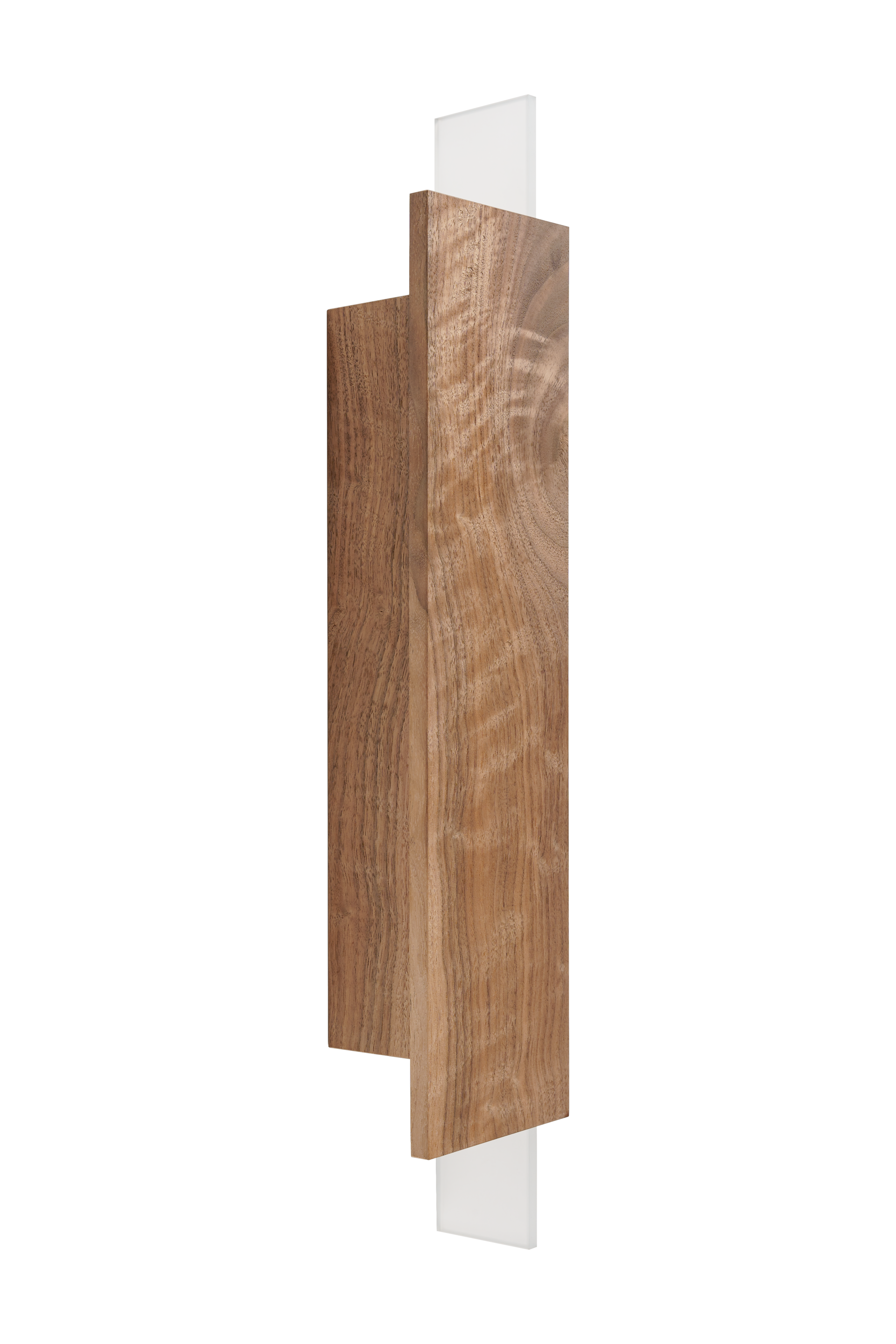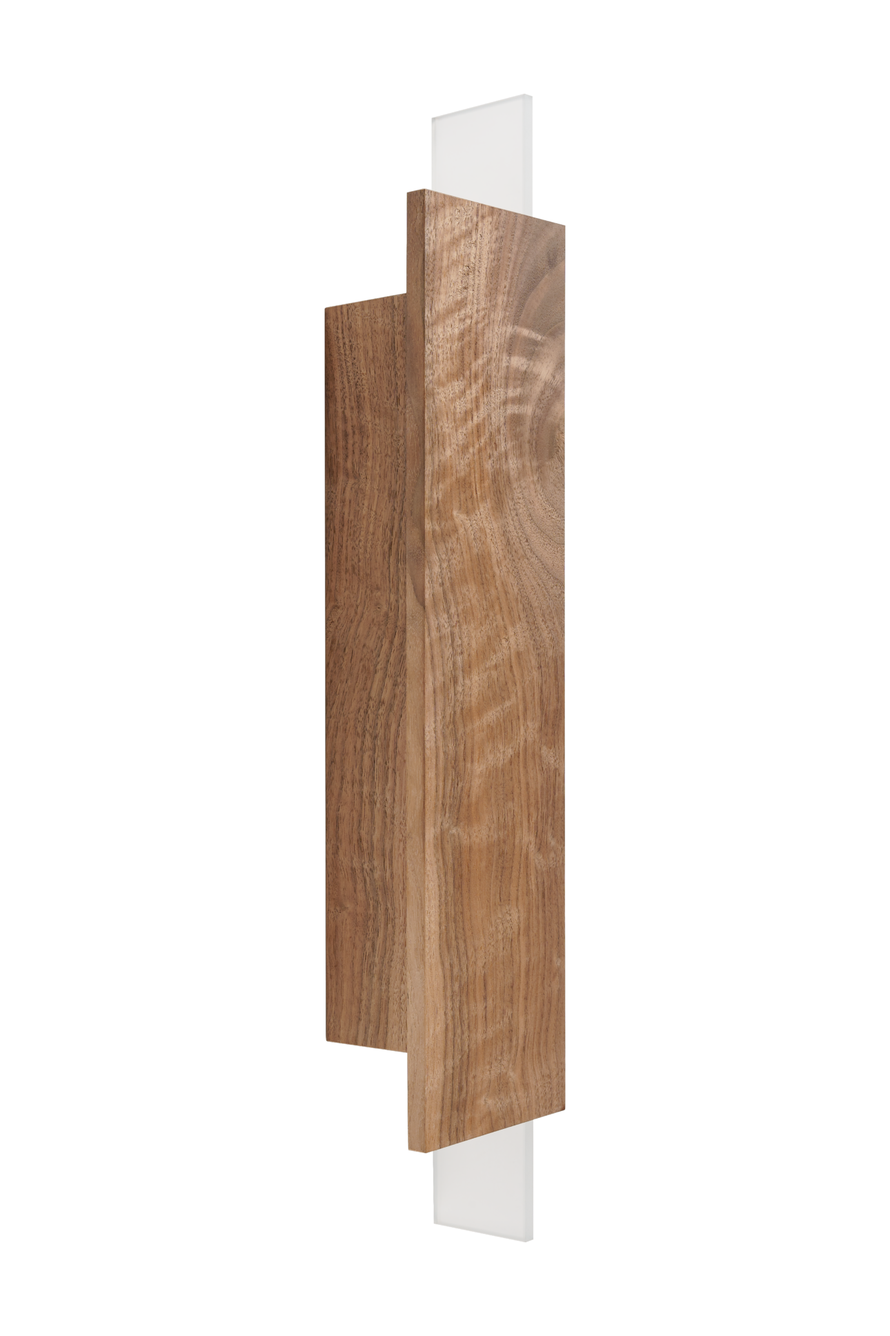 Blaze is a wall lamp that combines the solidity of natural American walnut wood with the soft diffusion of frosted glass. Its geometric form and precise proportions make it a perfect complement to modern, minimalist interiors – both residential and commercial.