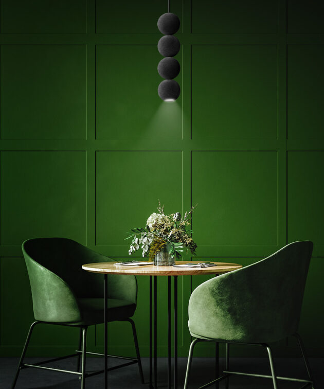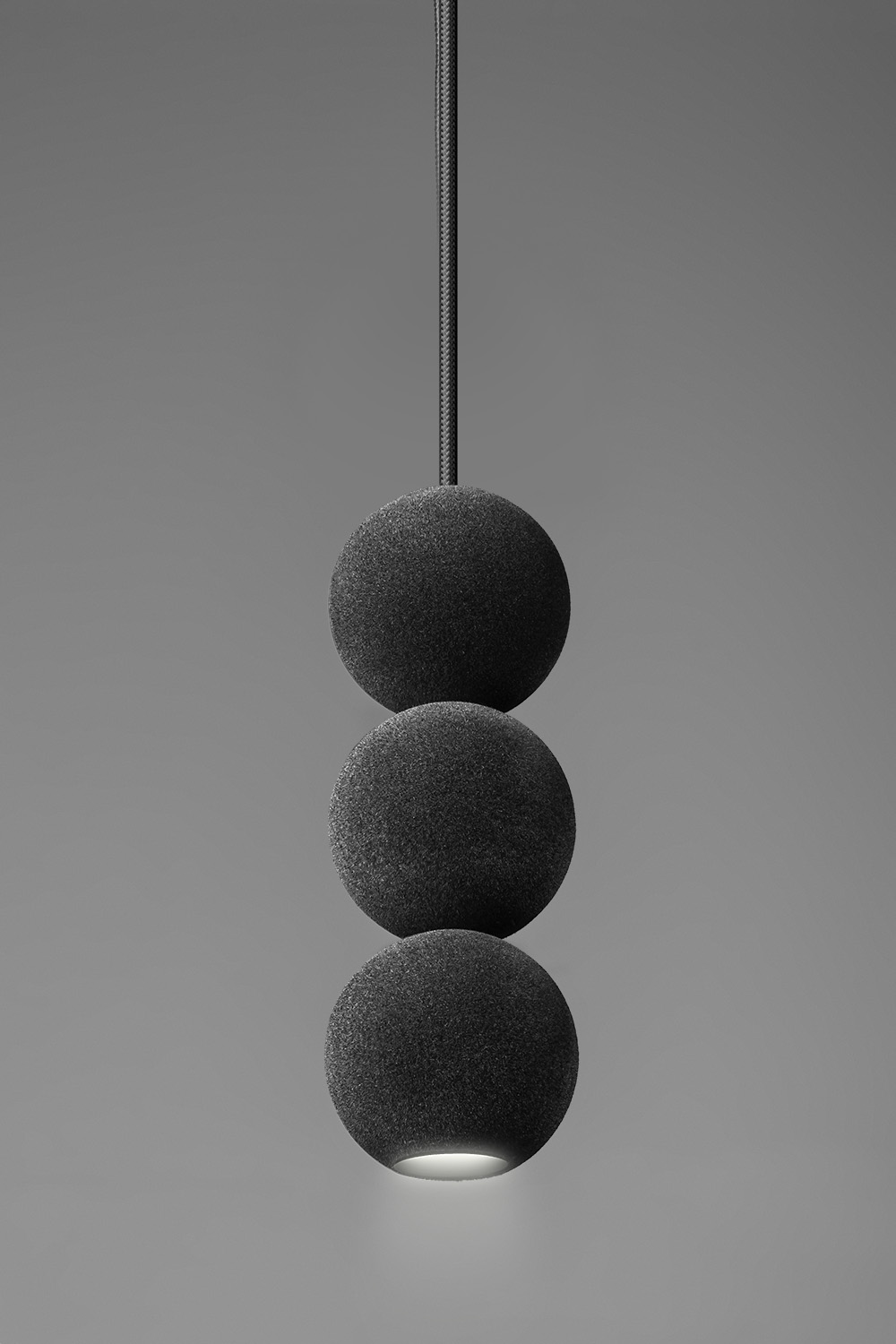 Bola Bola Velvet LED is a pendant lamp with a graphic form and a soft finish that gives it a subtle, saturated look. Covered with the distinctive Velvet structure, it becomes an elegant source of light – with an integrated LED module that emphasises its architectural composition.