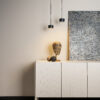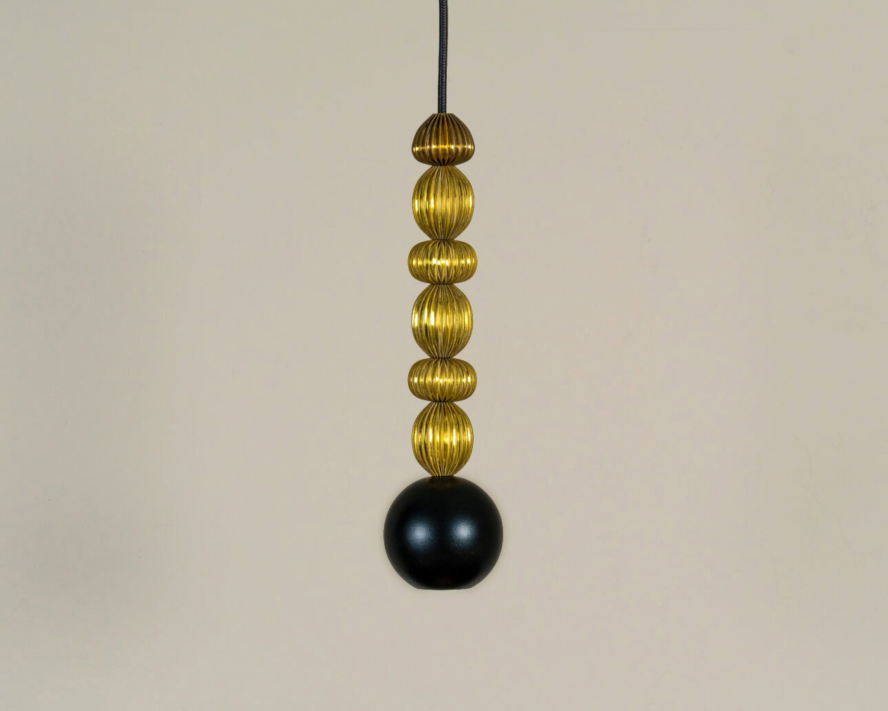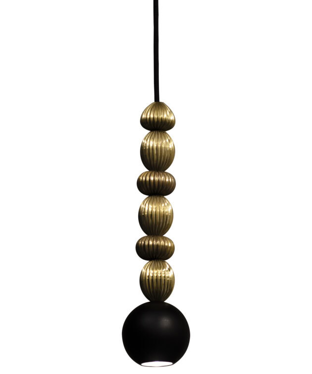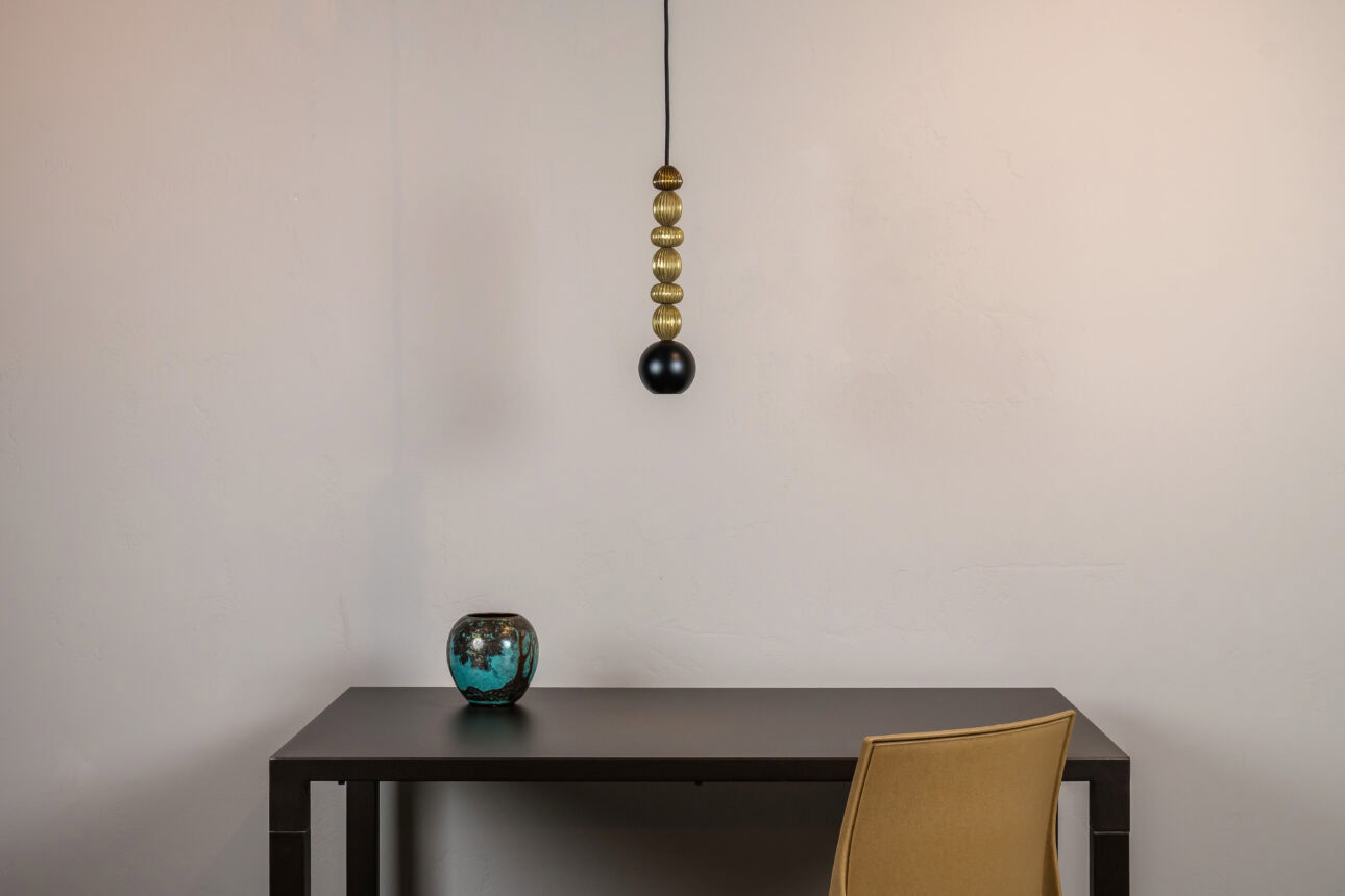 Bola Queen is a contemporary pendant lamp that combines a classic arrangement of spheres with decorative brass accents. The composition is based on powder-coated steel spheres rhythmically interwoven with solid brass rings. Available in three versions – with one, two or three spheres – the lamp can be precisely matched to the scale of the interior. The option of “multi” configurations on a shared ceiling rose further expands the design potential of this collection.