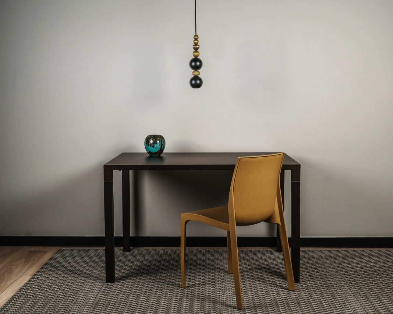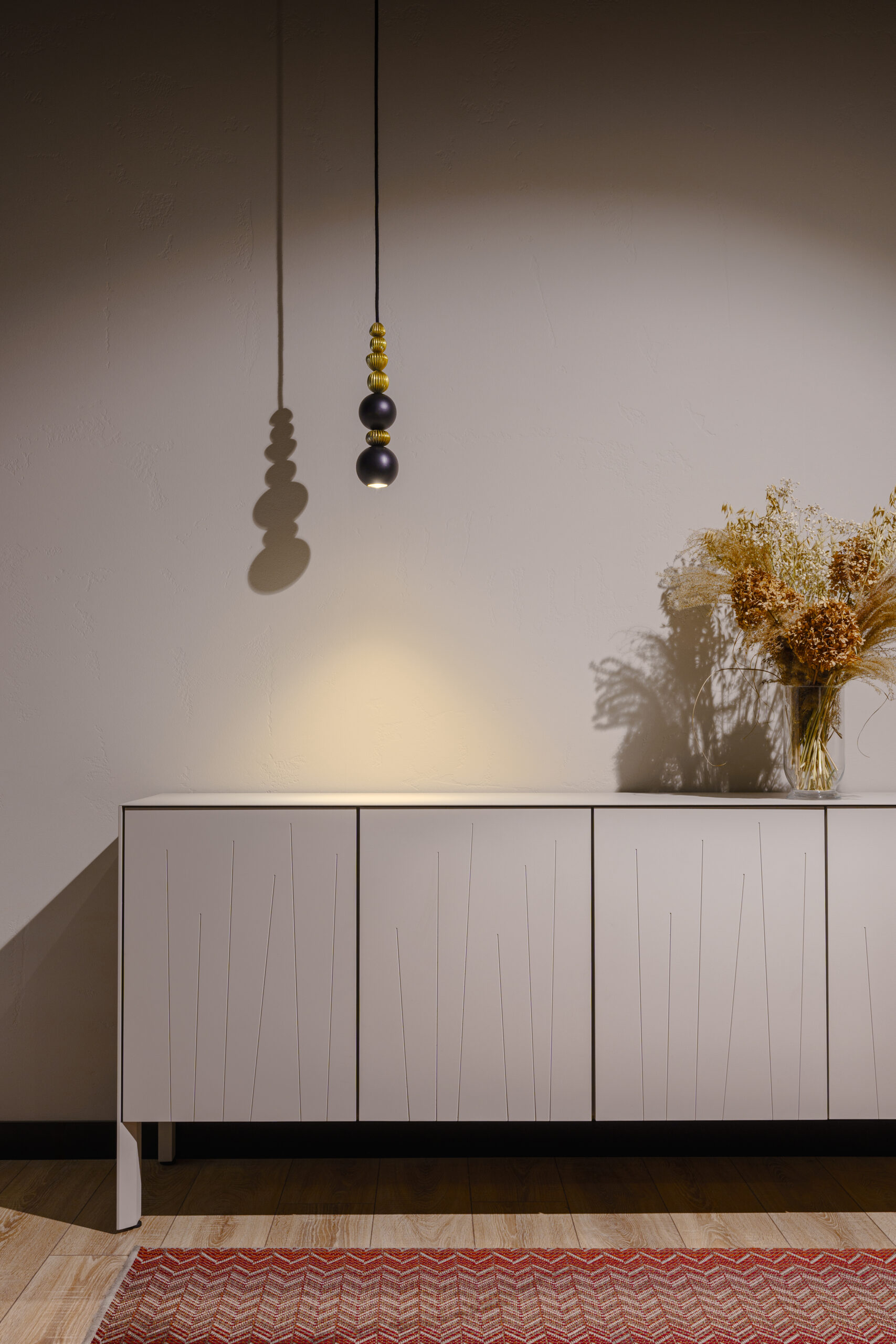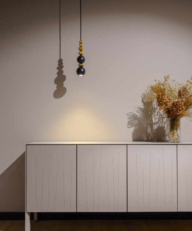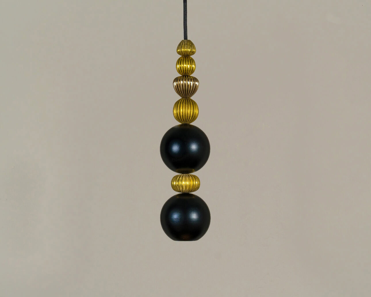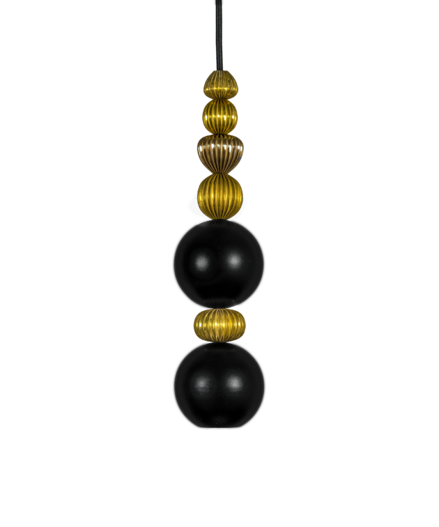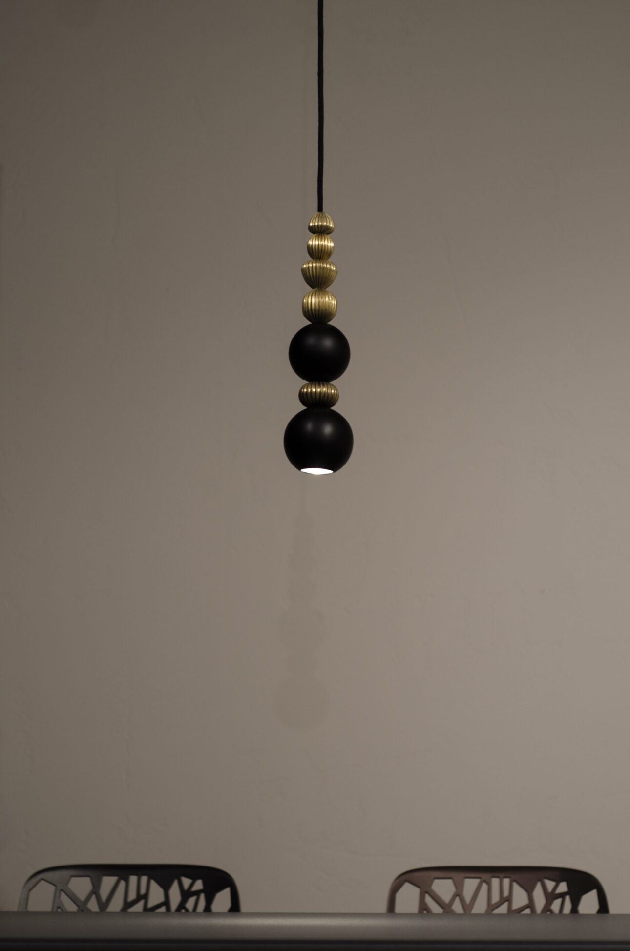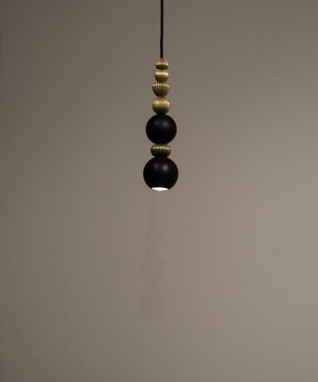 Bola Queen is a contemporary pendant lamp that combines a classic arrangement of spheres with decorative brass accents. The composition is based on powder-coated steel spheres rhythmically interwoven with solid brass rings. Available in three versions – with one, two or three spheres – the lamp can be precisely matched to the scale of the interior. The option of “multi” configurations on a shared ceiling rose further expands the design potential of this collection.