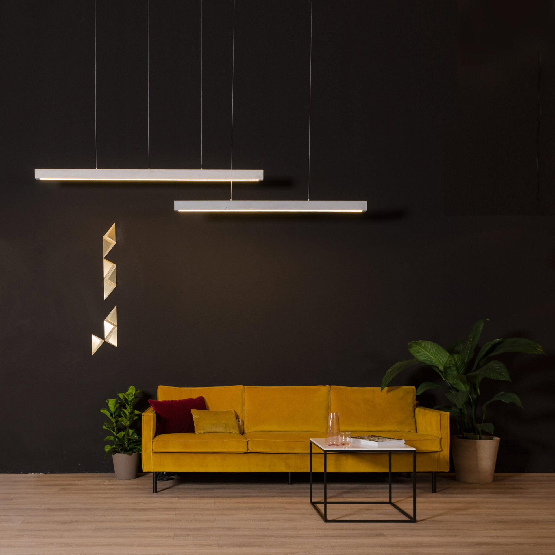 Concrete Line is a pendant lamp with a rectangular, architectural silhouette, made entirely of hand-cast concrete. The raw texture and geometric shape give it a technical and timeless character. The integrated LED source provides even, diffused light – perfect for illuminating tables, countertops, or desks. Two sizes and the option to choose the colour temperature make it possible to adapt the lamp precisely to the function and scale of the interior.