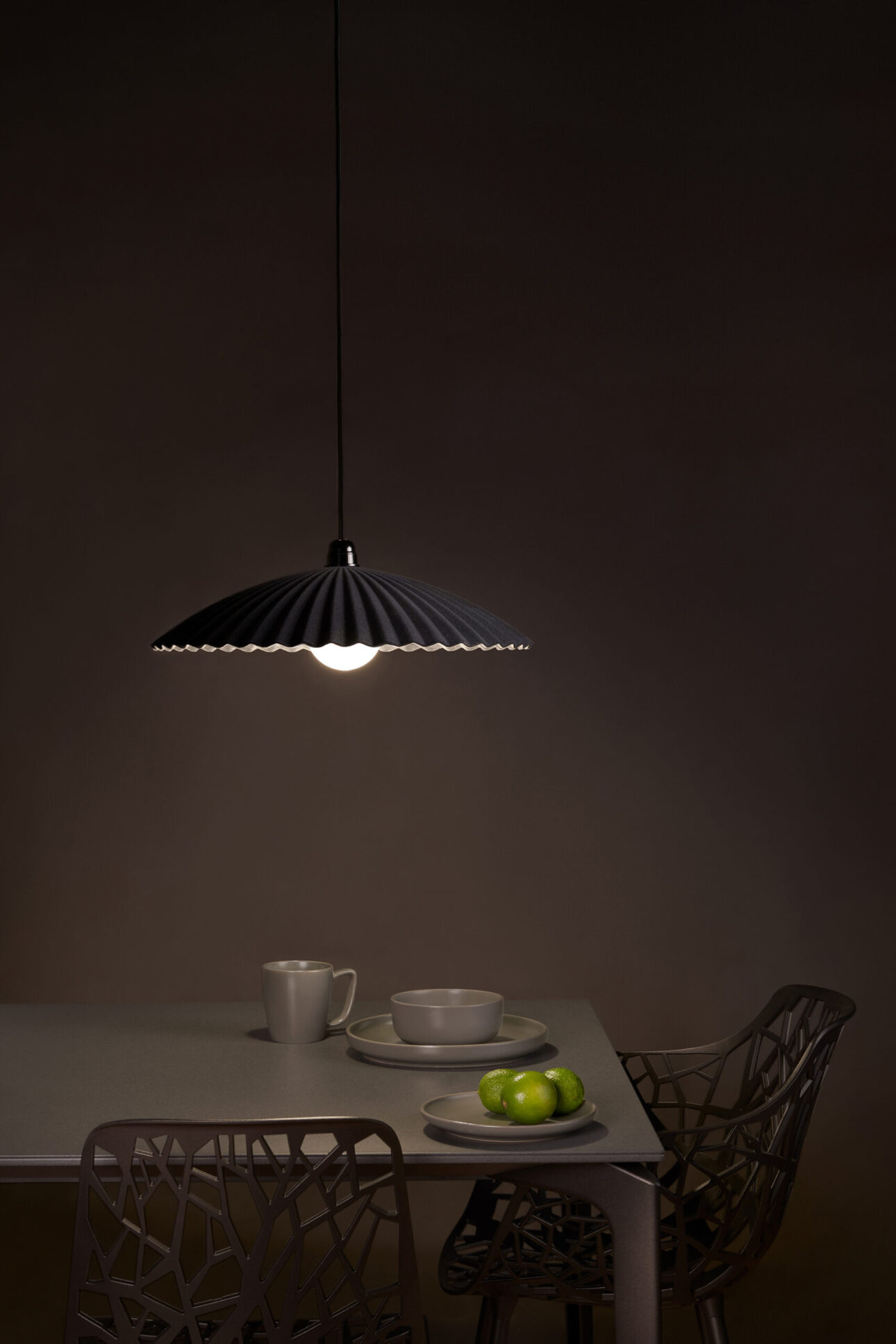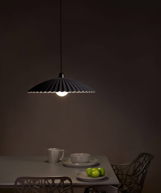Fala is an aluminium pendant lamp whose subtly undulating shape catches the eye and brings a sense of lightness to interiors. Available in two versions – the classic powder-coated finish or the velvety Fala Velvet – it fits perfectly into modern spaces where both form and finish are equally important. The geometry remains the same, but the visual effect changes depending on the surface: matte simplicity or the soft elegance of velvet.