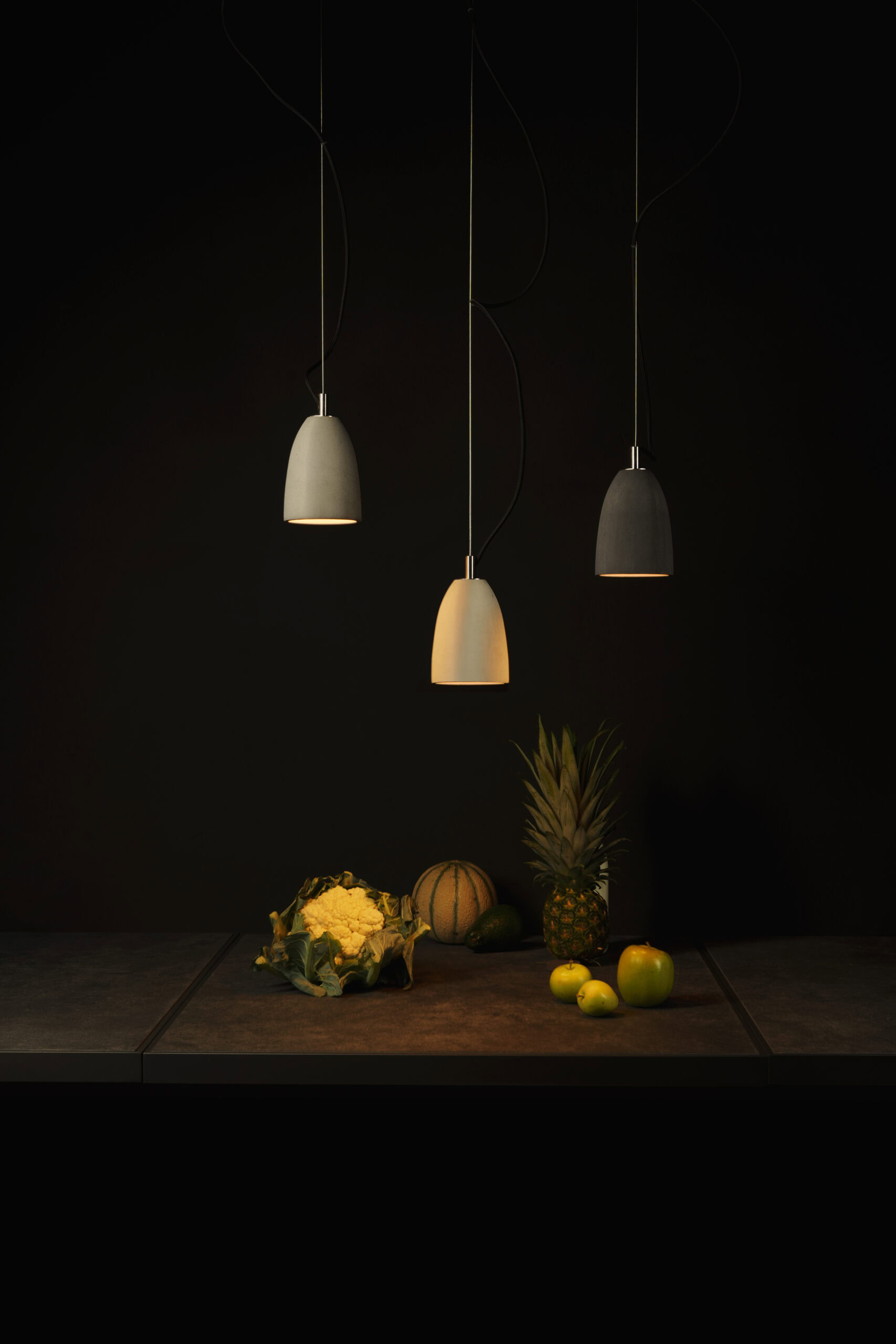 The Febe series is a collection of concrete pendant lamps that combine technical simplicity with subtle elegance. Each lamp is handcrafted, giving it a unique texture and individual character. With its classic conical shape, Febe fits seamlessly into both modern and loft-style interiors – from kitchens and dining rooms to commercial spaces.