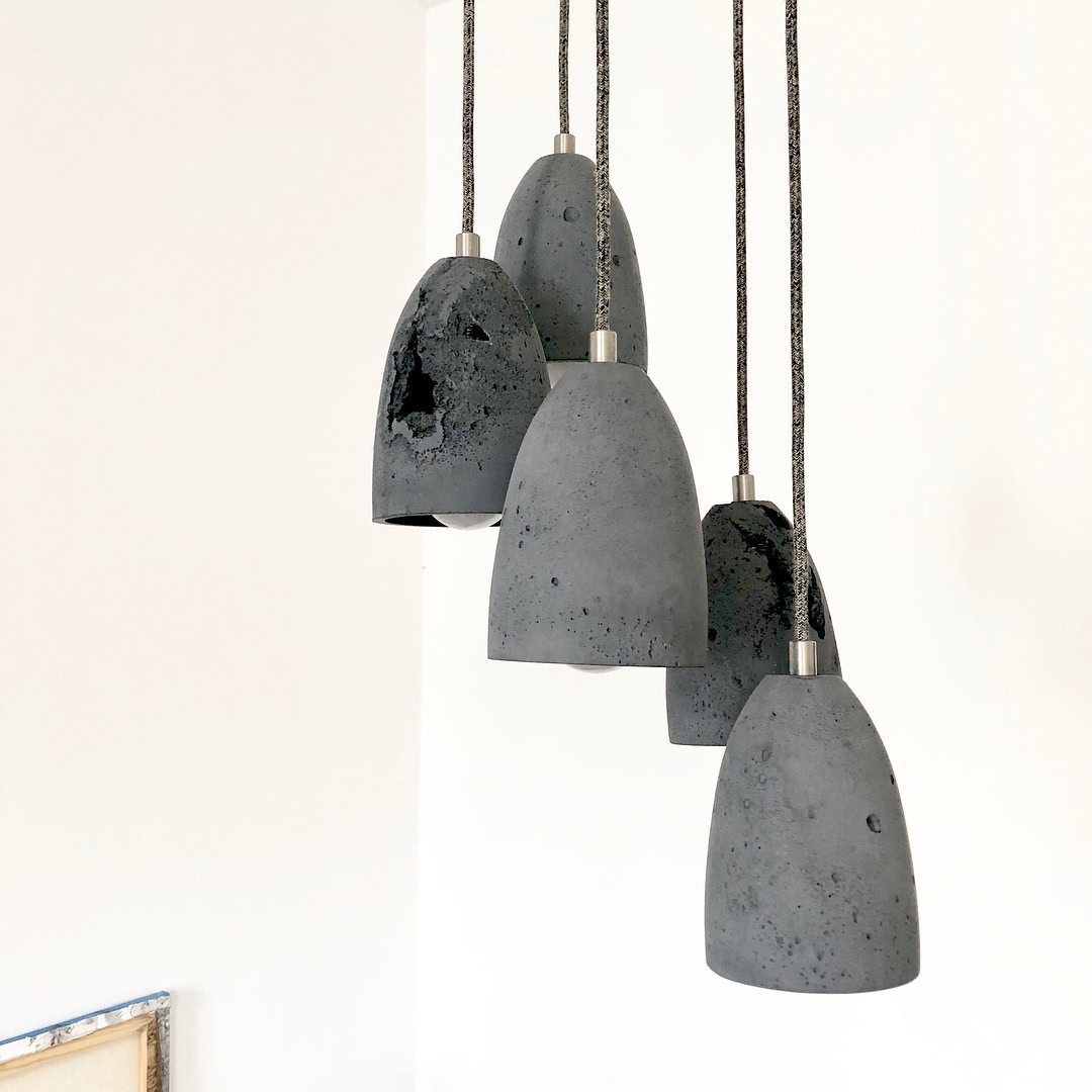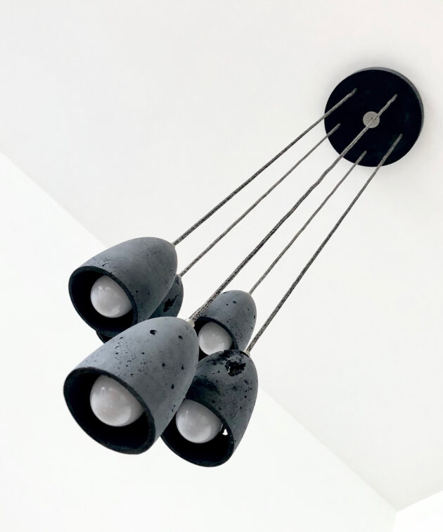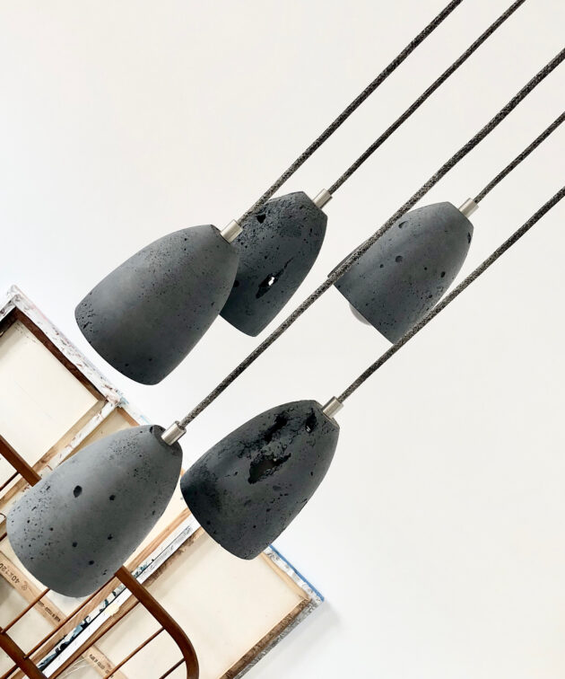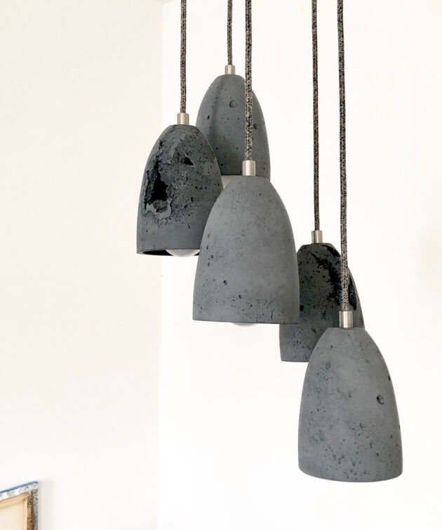 Febe Volcano is a unique series of pendant lamps made of hand-cast architectural concrete. Unlike the smooth surfaces of the classic Febe, this variant is distinguished by cavities, cracks, and natural imperfections created in a controlled casting process. Each lamp carries its own pattern of structure – like a rock shaped by time. Lighting with character, it brings authenticity and the strength of raw material into interiors.