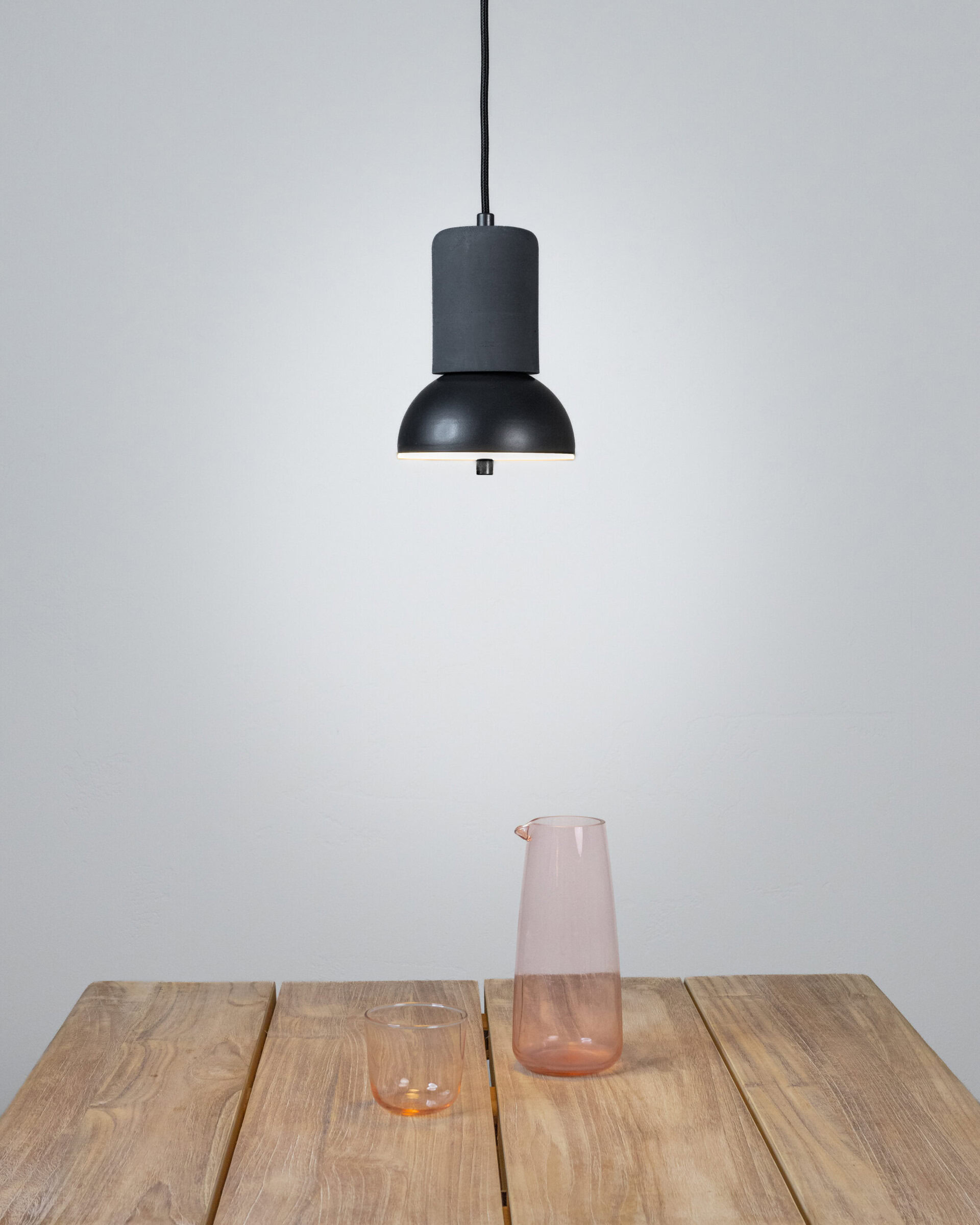Giro is a pendant lamp that combines the rawness of concrete with the precision of finished aluminium. Its geometric, cylindrical form is based on a simple contrast of textures and finishes – the upper part of the shade is hand-cast concrete, while the lower part is powder-coated or velvet-finished aluminium. Thanks to its compact proportions and subtle aesthetics, Giro works equally well as a single accent light or in larger multi-point compositions.