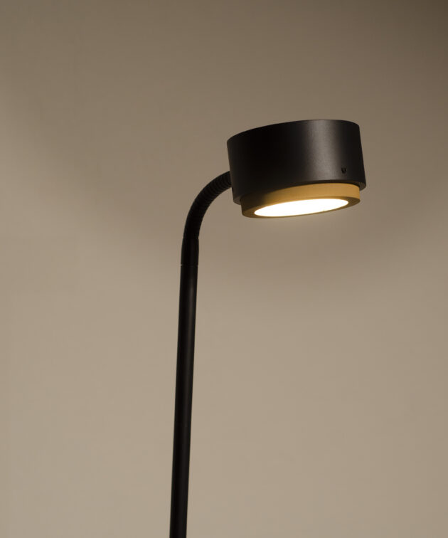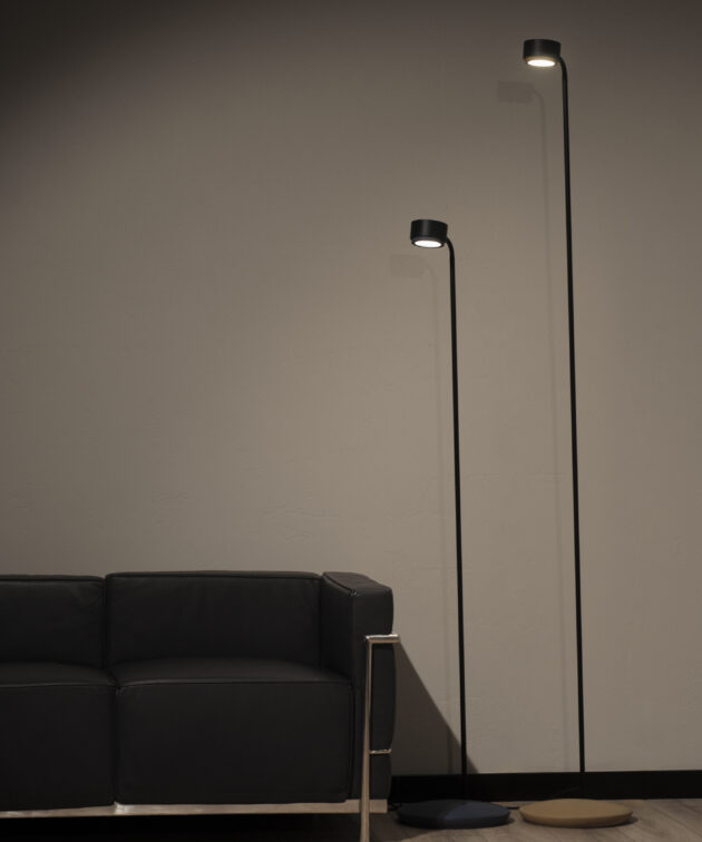 Jubi Concrete is a floor lamp that combines sculptural simplicity with industrial expression. Its construction is based on a massive concrete base and a cylindrical shade finished in matching concrete. These elements are connected by a slim, black powder-coated aluminium tube, giving the design a balanced character and architectural precision. The lamp is available in three heights, making it suitable for different types of spaces – from living rooms to galleries or foyers.
