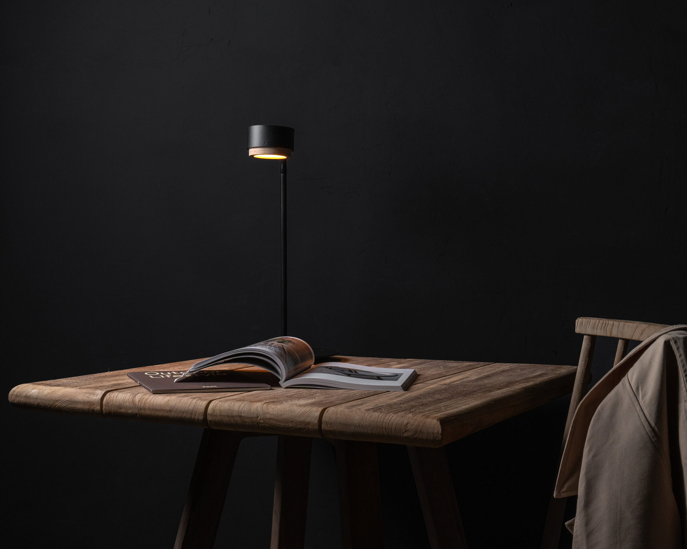 Jubi Wood Table is the table version of the Jubi collection, combining matte black aluminium with natural American walnut. Wooden details in the base and the inner part of the shade add visual warmth and material contrast, perfectly suited to modern, elegant interiors. A lamp that attracts attention without excess – ideal for a desk, bedside table, or shelf.