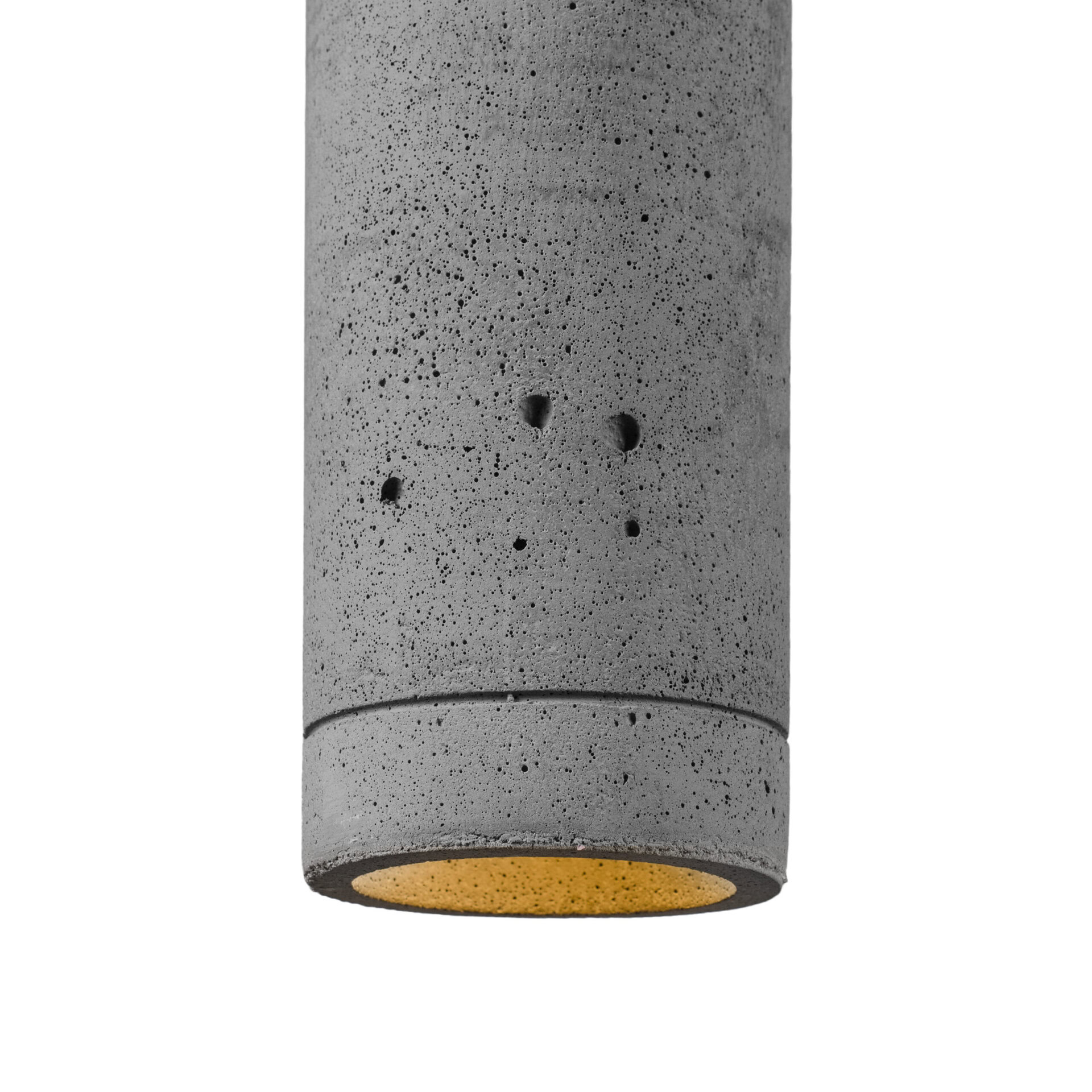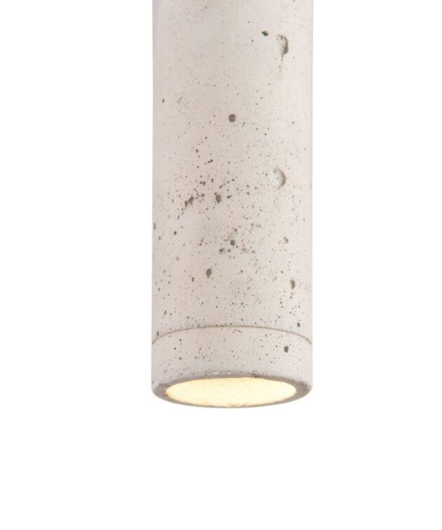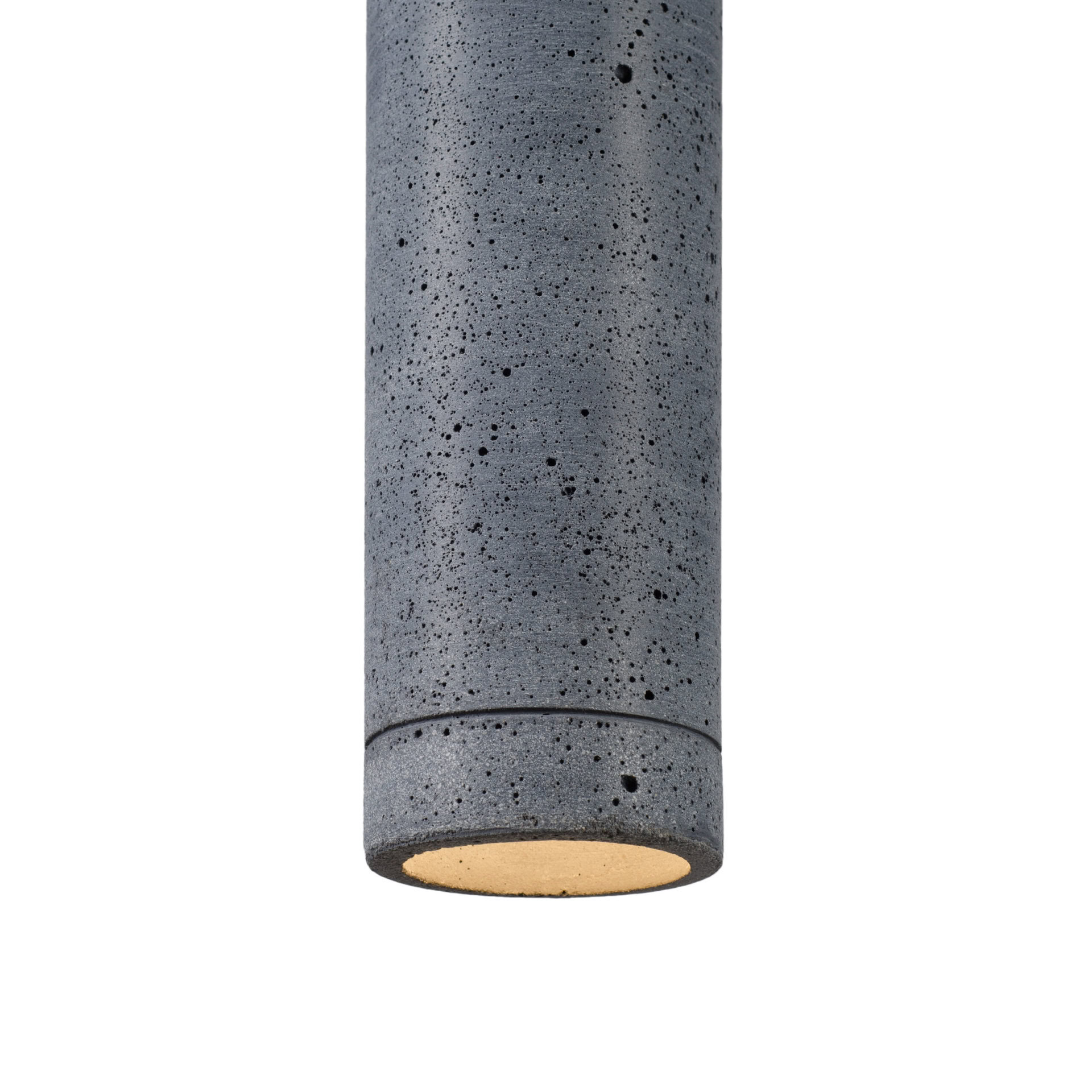 Kalla 11, 21, and 31 are a series of concrete pendant lamps with a cylindrical body, available in three lengths to suit the scale of any interior. Their minimalist design and small diameter (6.3 cm) make them perfect as light points in multi-pendant arrangements – above a dining table, bar, kitchen island, or in commercial spaces. Each piece is hand-cast, ensuring every lamp has a unique concrete surface and character.