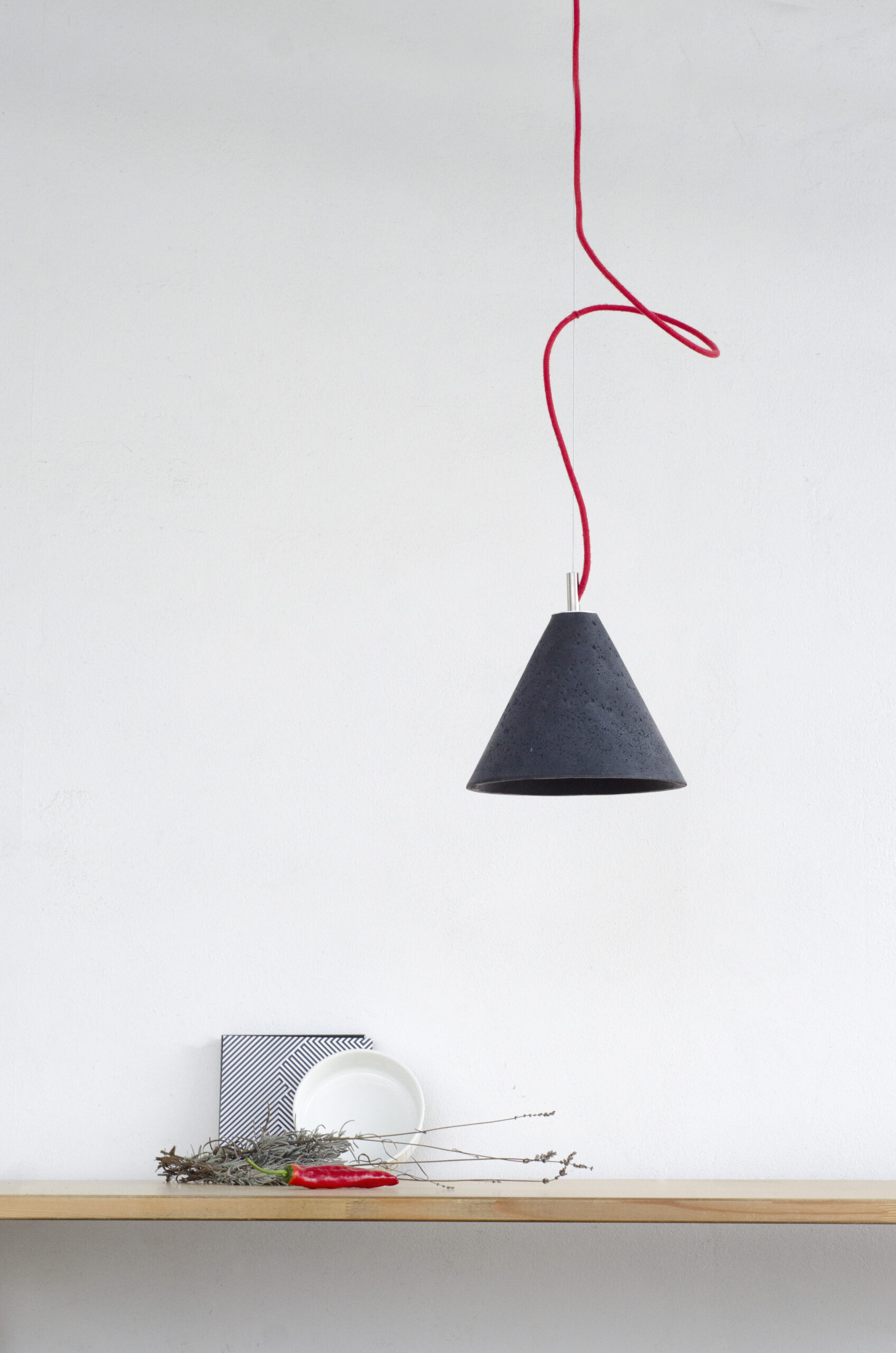 Ceiling rose: concrete, colour-matched to the shade