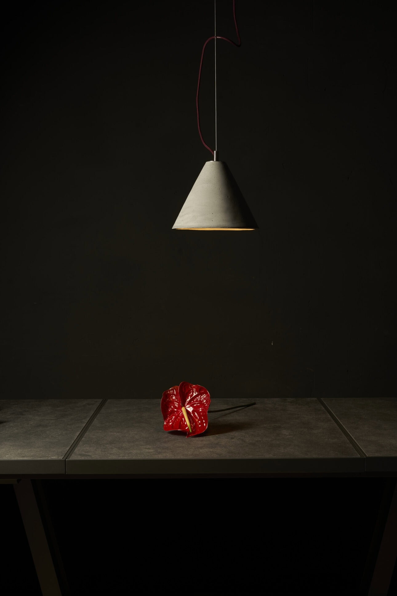 Ceiling rose: concrete, colour-matched to the shade
