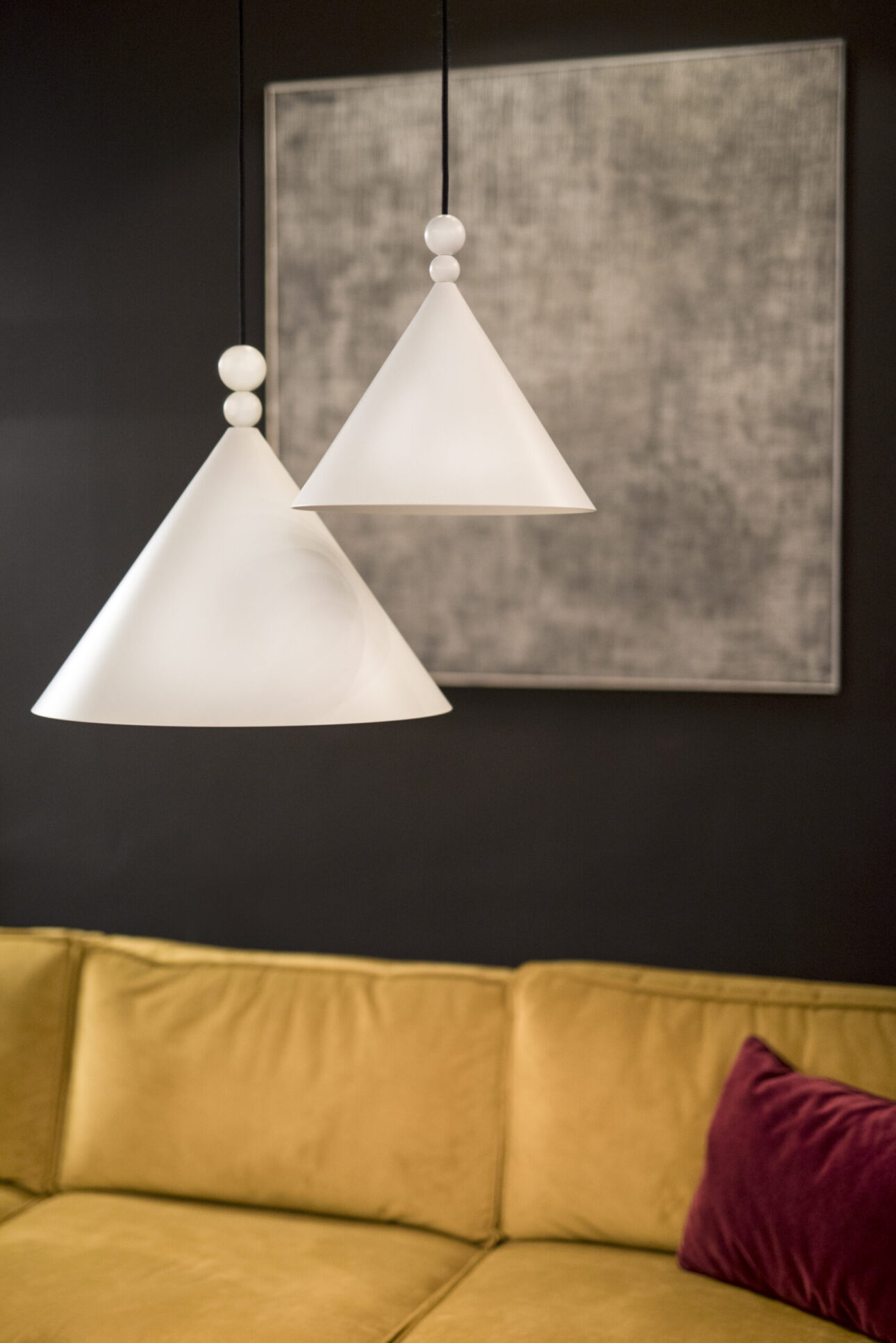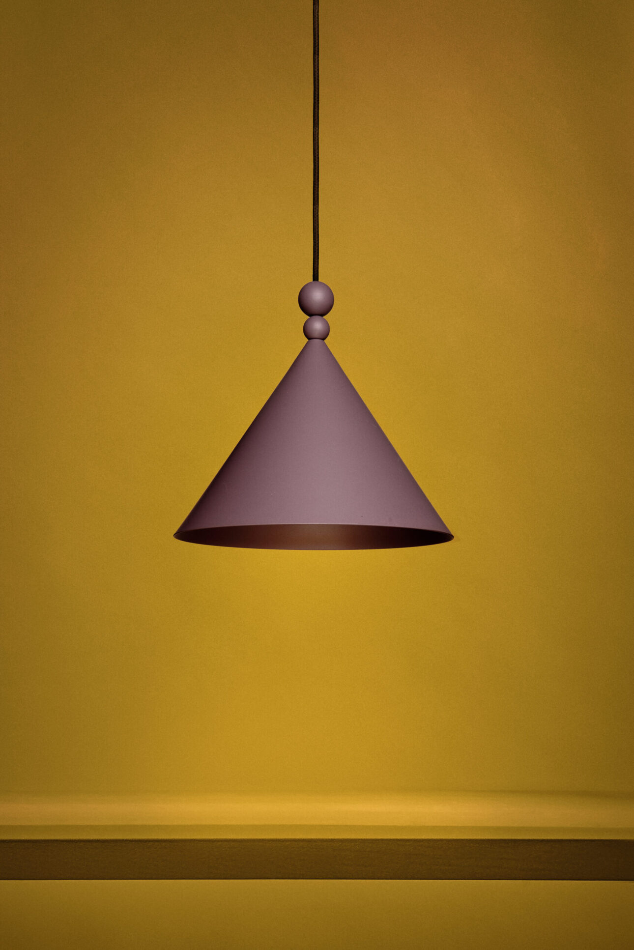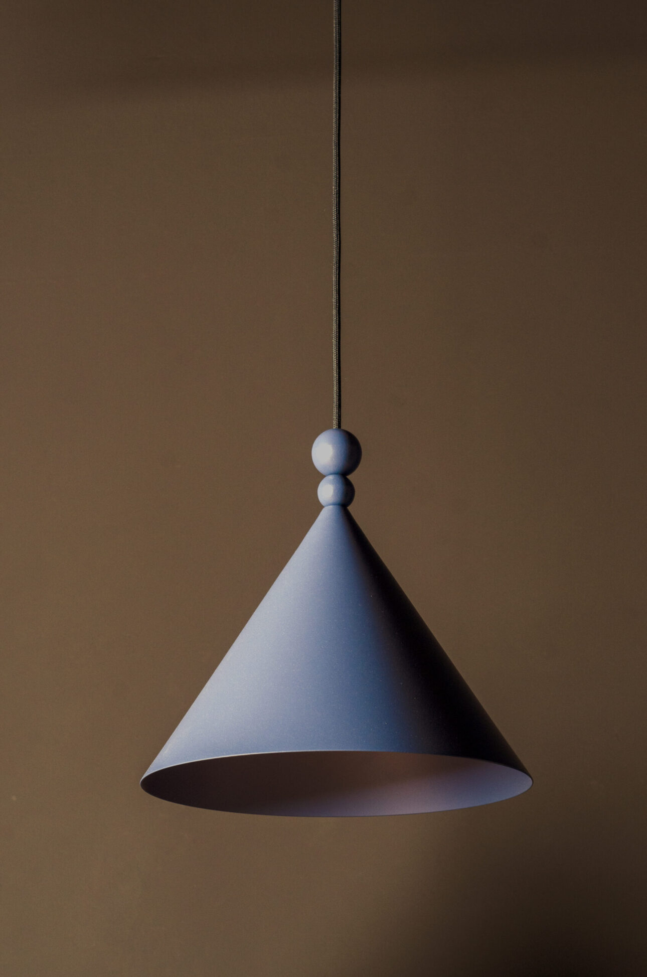 Konko is a pendant lamp that combines a minimalist conical shade with a subtle yet distinctive accent – two spherical elements placed above the lampshade. This characteristic feature gives the lamp its recognisable rhythm and balances its form. Made entirely of powder-coated aluminium and available in four sizes, Konko works beautifully as a single piece or in group arrangements. The design was recognised with the must have 2020 award at Łódź Design Festival.