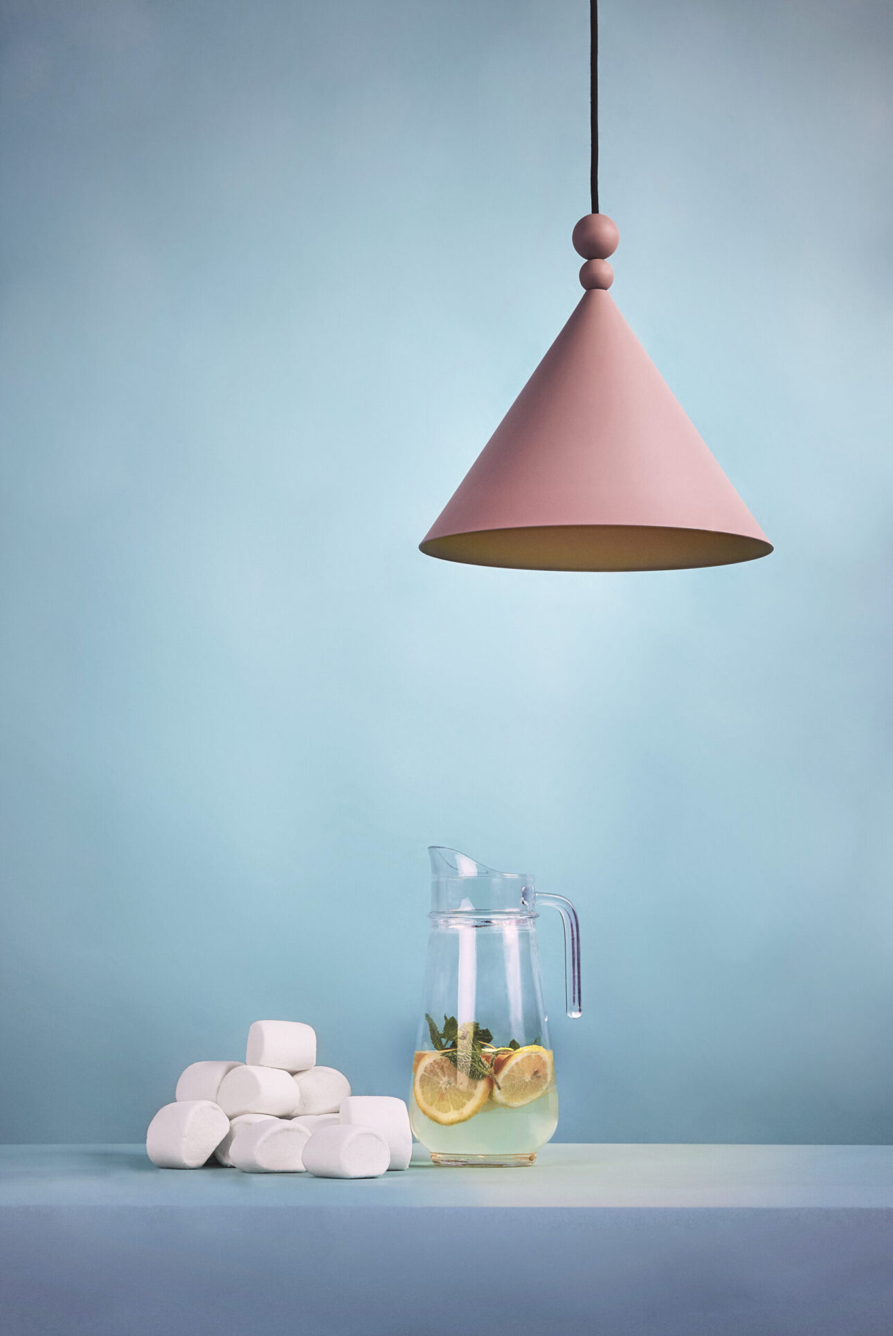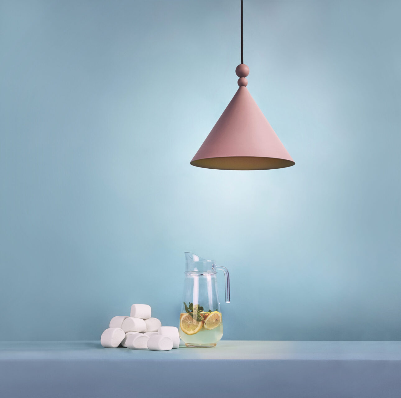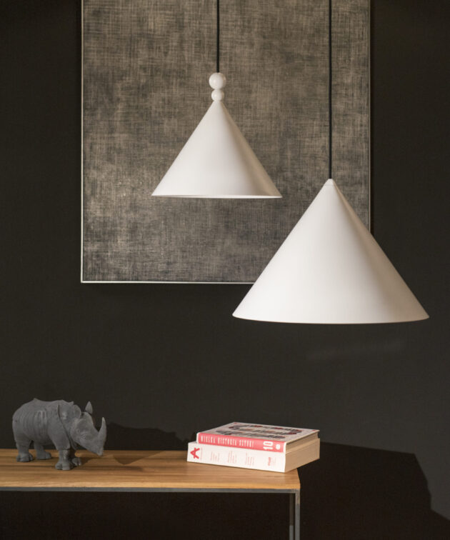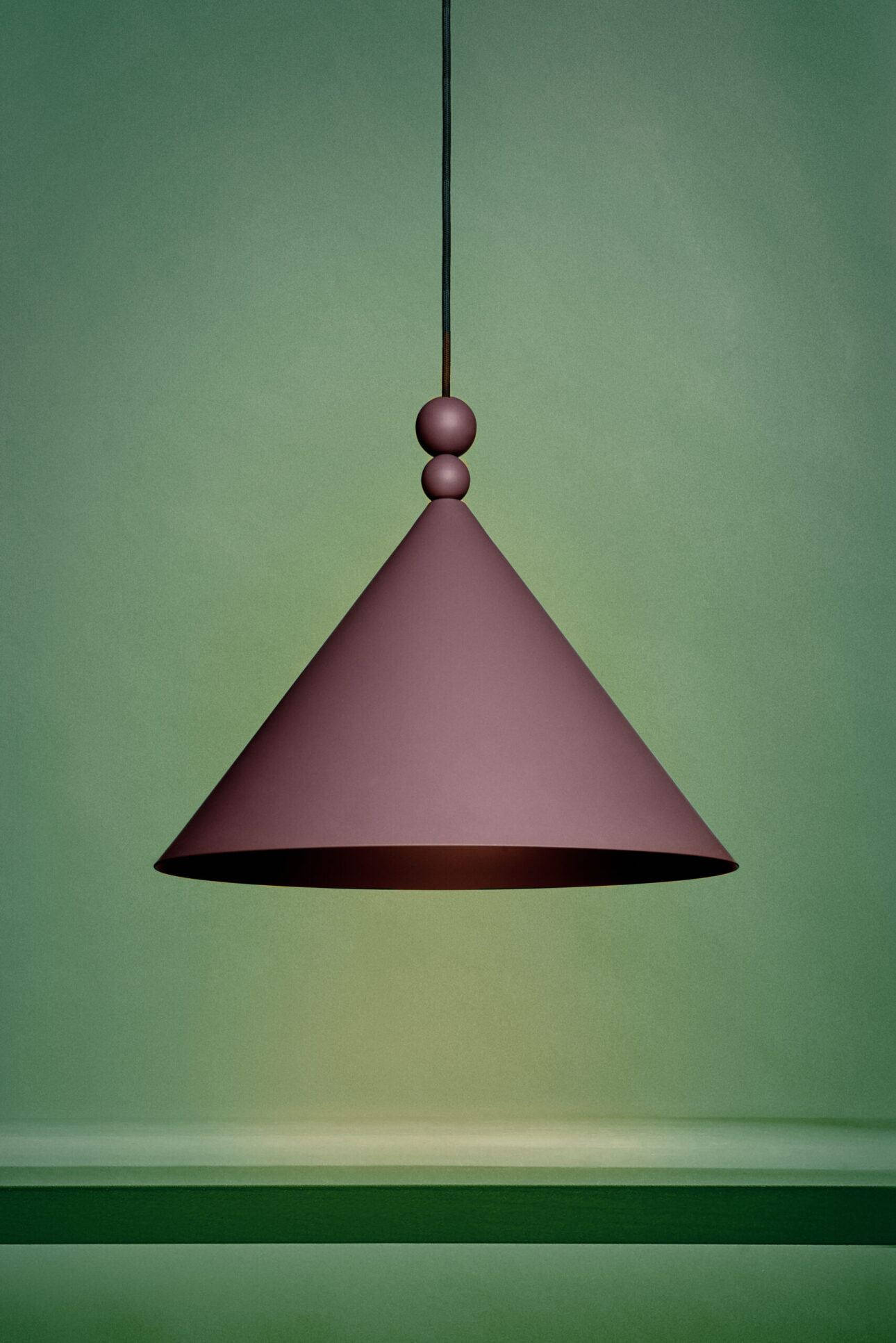 Konko is a pendant lamp that combines a minimalist conical shade with a subtle yet distinctive accent – two spherical elements placed above the lampshade. This characteristic feature gives the lamp its recognisable rhythm and balances its form. Made entirely of powder-coated aluminium and available in four sizes, Konko works beautifully as a single piece or in group arrangements. The design was recognised with the must have 2020 award at Łódź Design Festival.