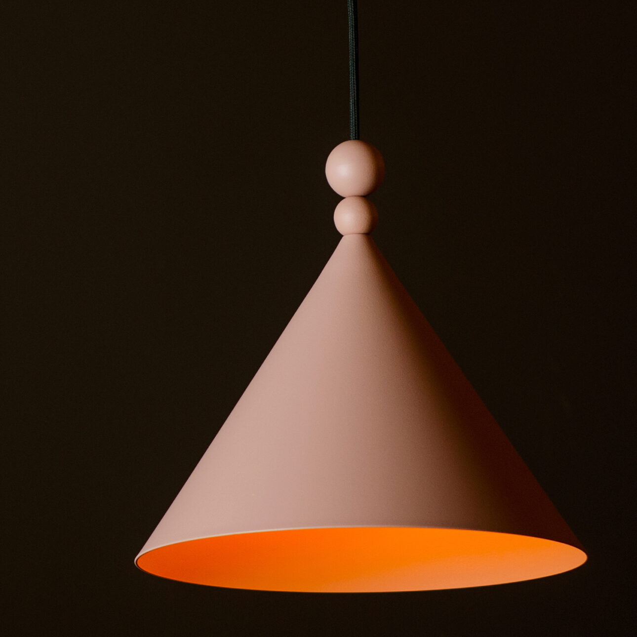 Ceiling rose: conical aluminium, colour-matched to the shade