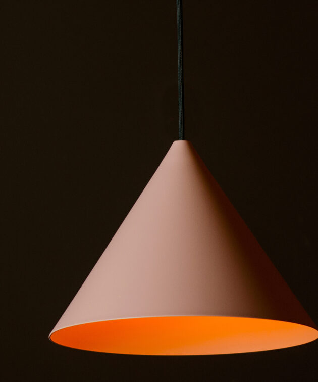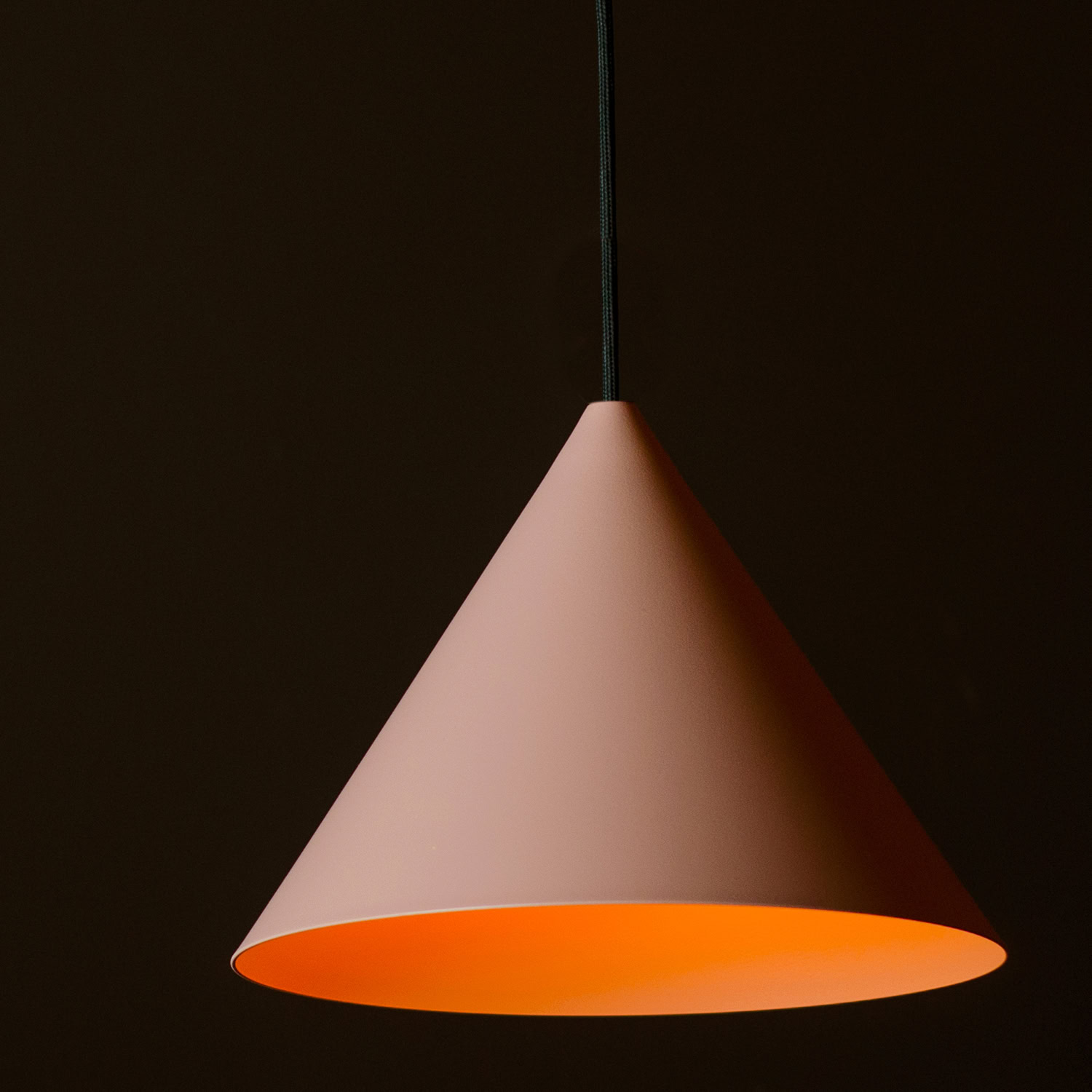 Ceiling rose: conical aluminium, colour-matched to the shade