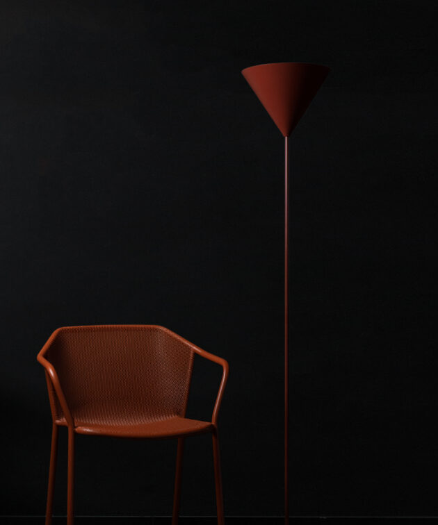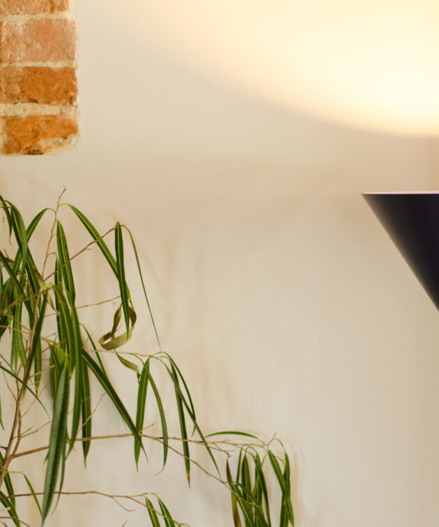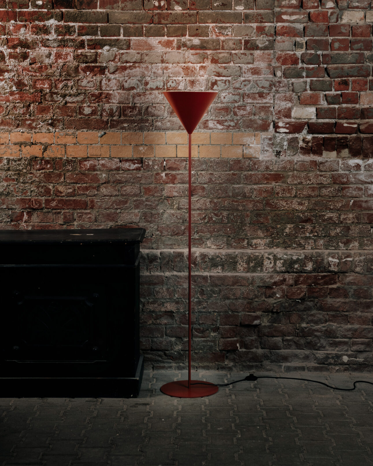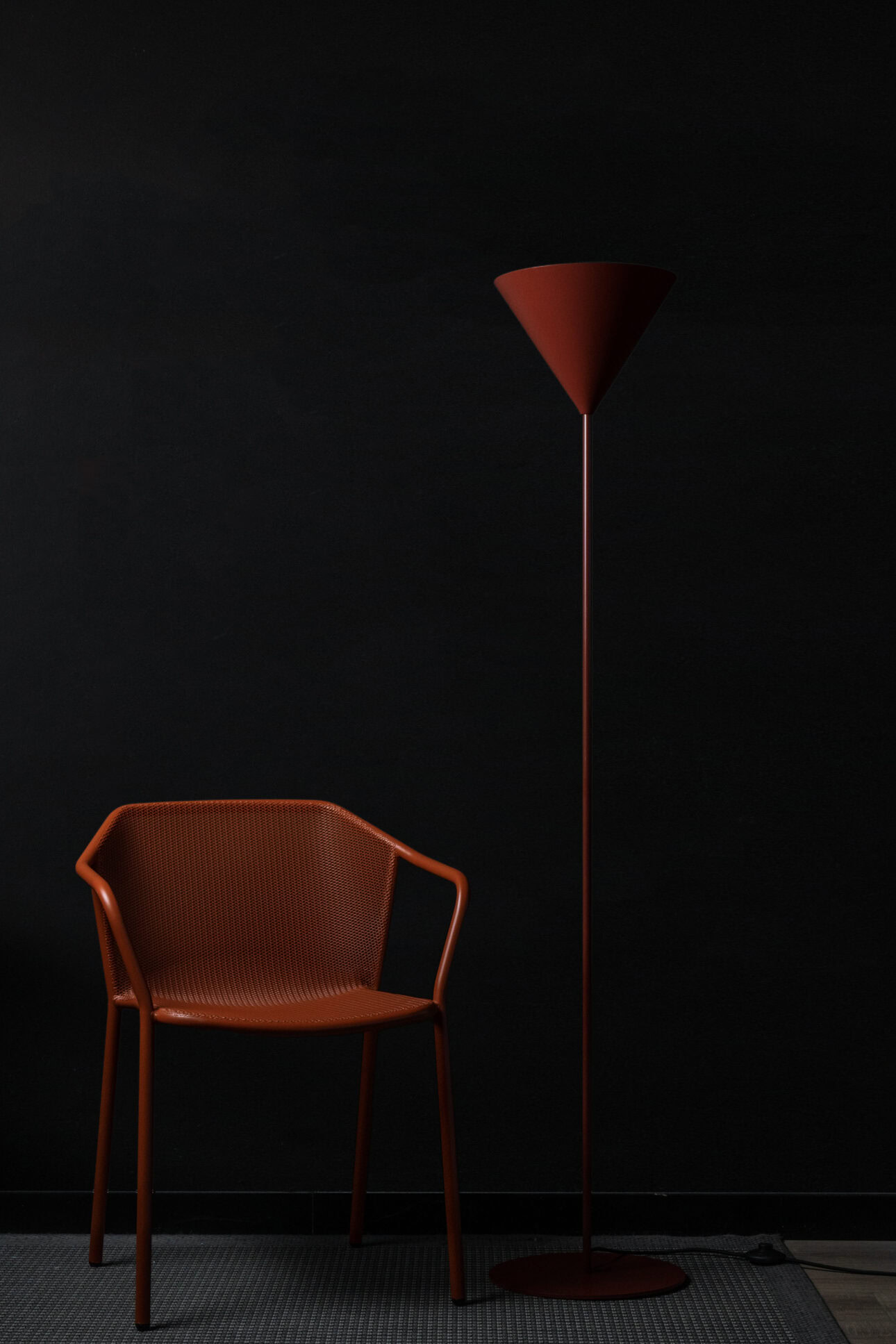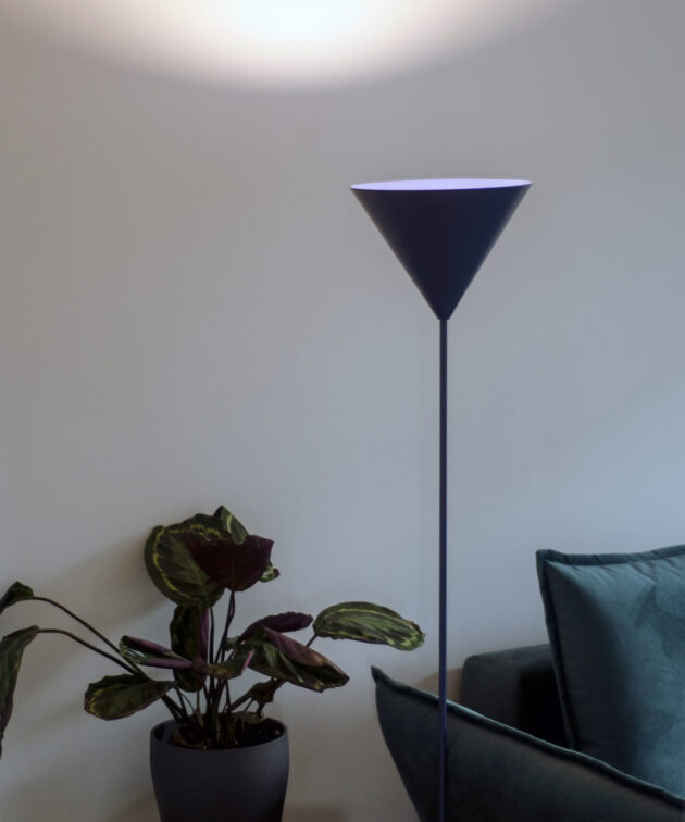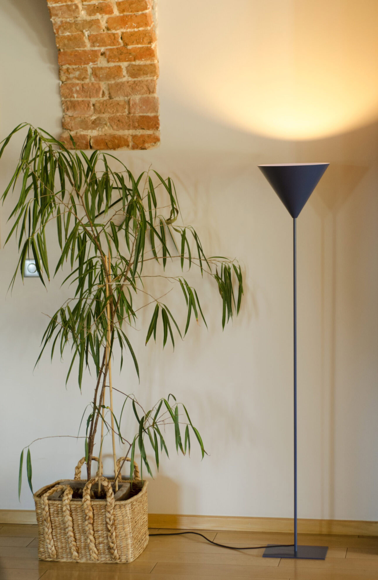 Konko Floor is a contemporary floor lamp that combines precise craftsmanship with raw aesthetics. The 30 cm powder-coated aluminium shade is mounted on a solid steel base – available in two versions: round or rectangular. Together they form a balanced, cohesive composition, perfect for interiors with an industrial, modern, or gallery-like atmosphere.