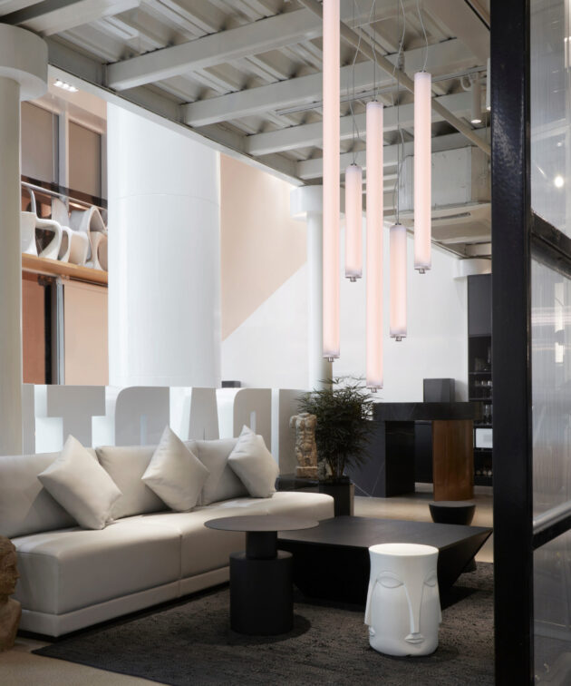 Longa Vertical is a pendant lamp that combines the industrial character of concrete with a minimalist form and the subtle glow of opal light. With its elongated vertical silhouette and the option to create multi-pendant compositions, it works perfectly in cascading arrangements – above staircases, in hallways, or within tall residential and commercial spaces. Concrete end caps give each version a unique character, while the integrated LED source ensures high-quality light and convenient remote control dimming.