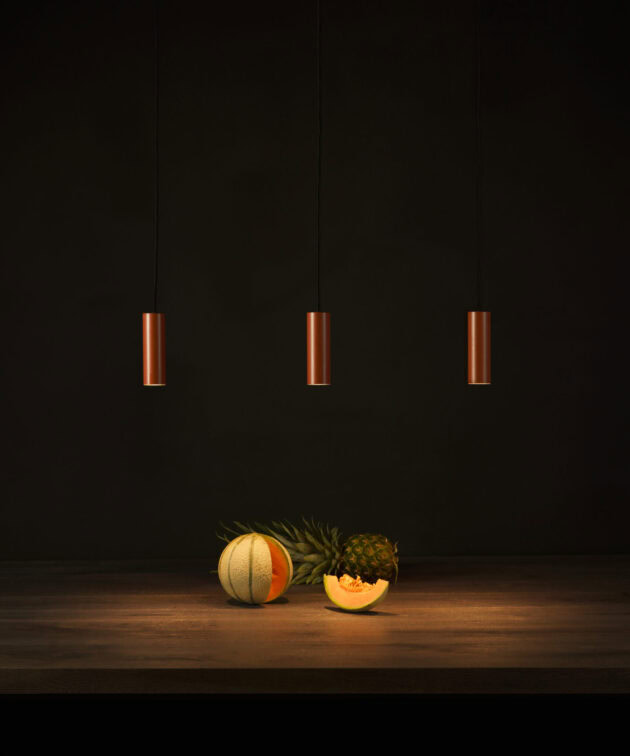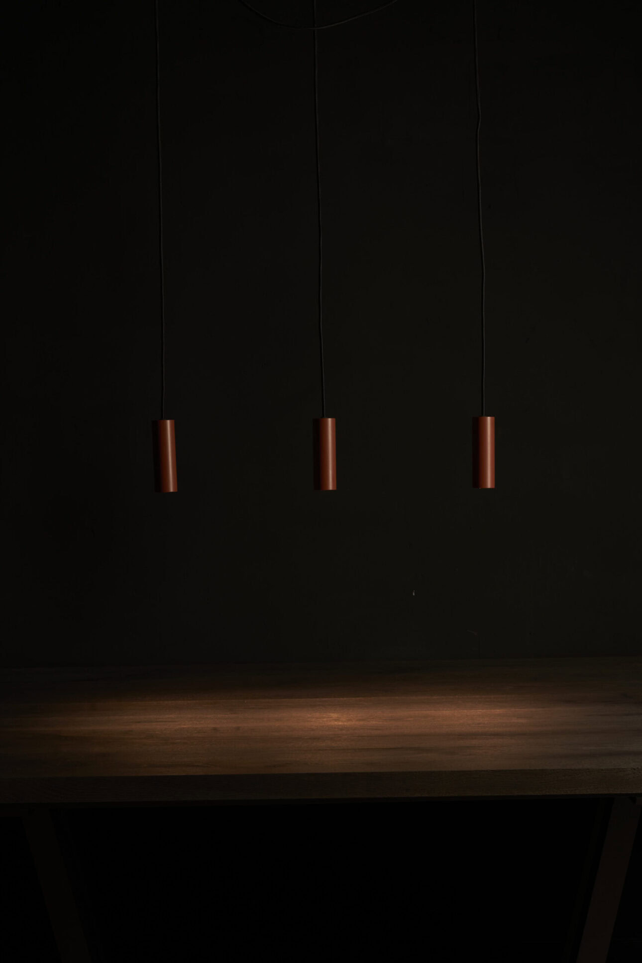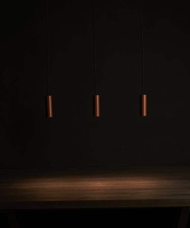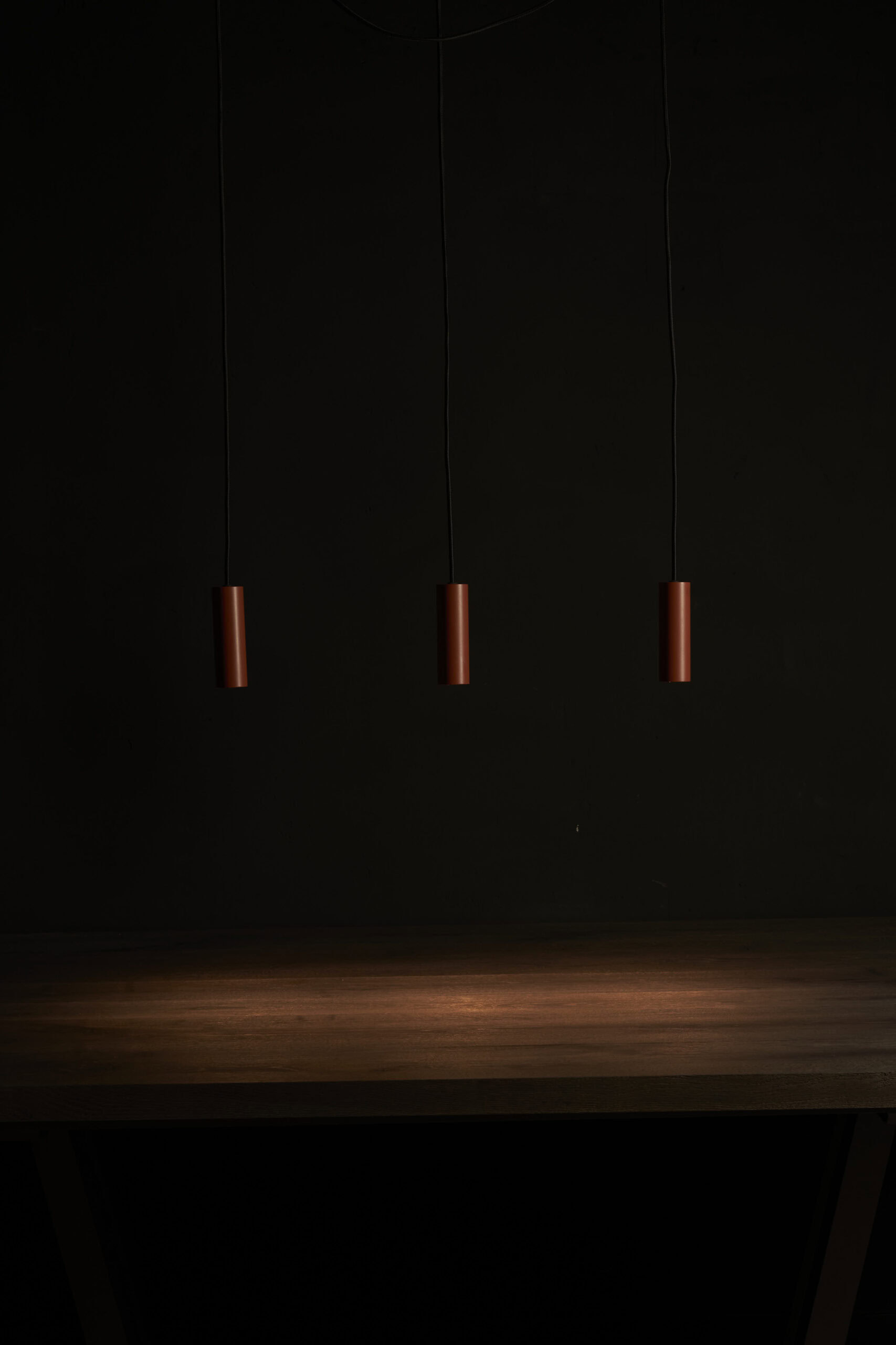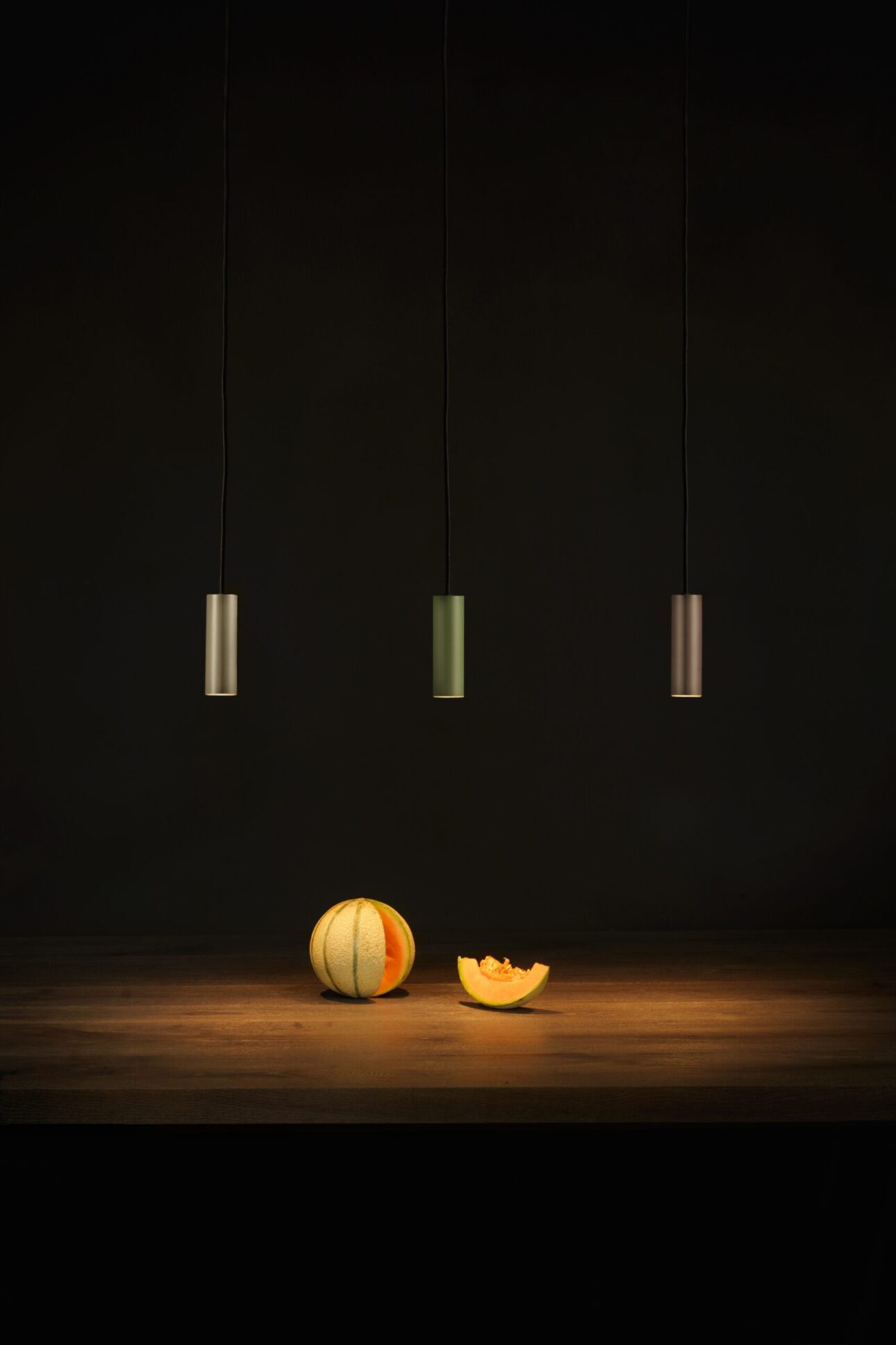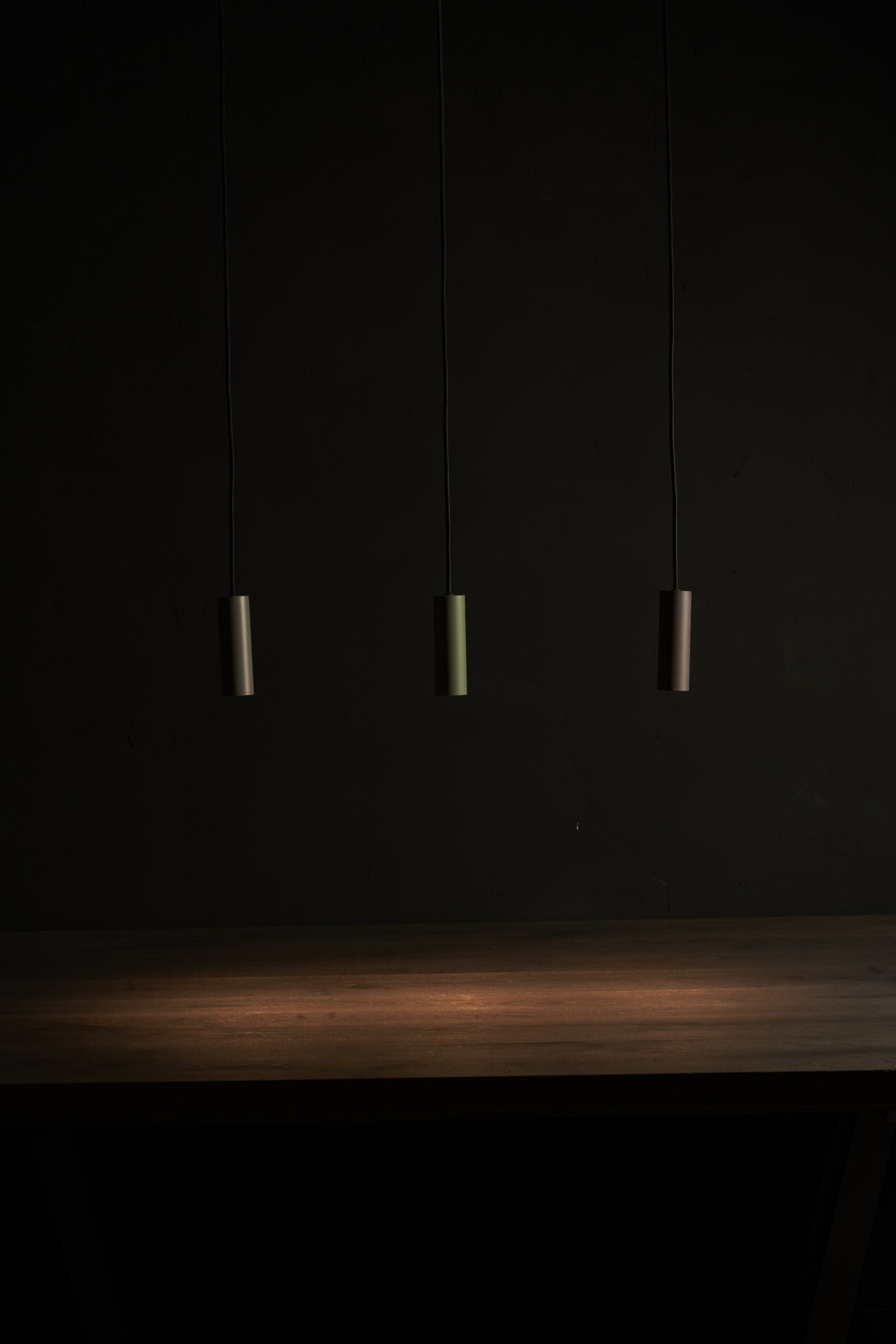 Matuba LED is a contemporary pendant lamp with an ultra-simple silhouette and compact scale. Its slim aluminium shade, only 4.5 cm in diameter, houses an integrated LED module that delivers focused, precise light. Perfect for interiors where detail and discretion matter, it also works beautifully in multi-point compositions with a cascading effect.