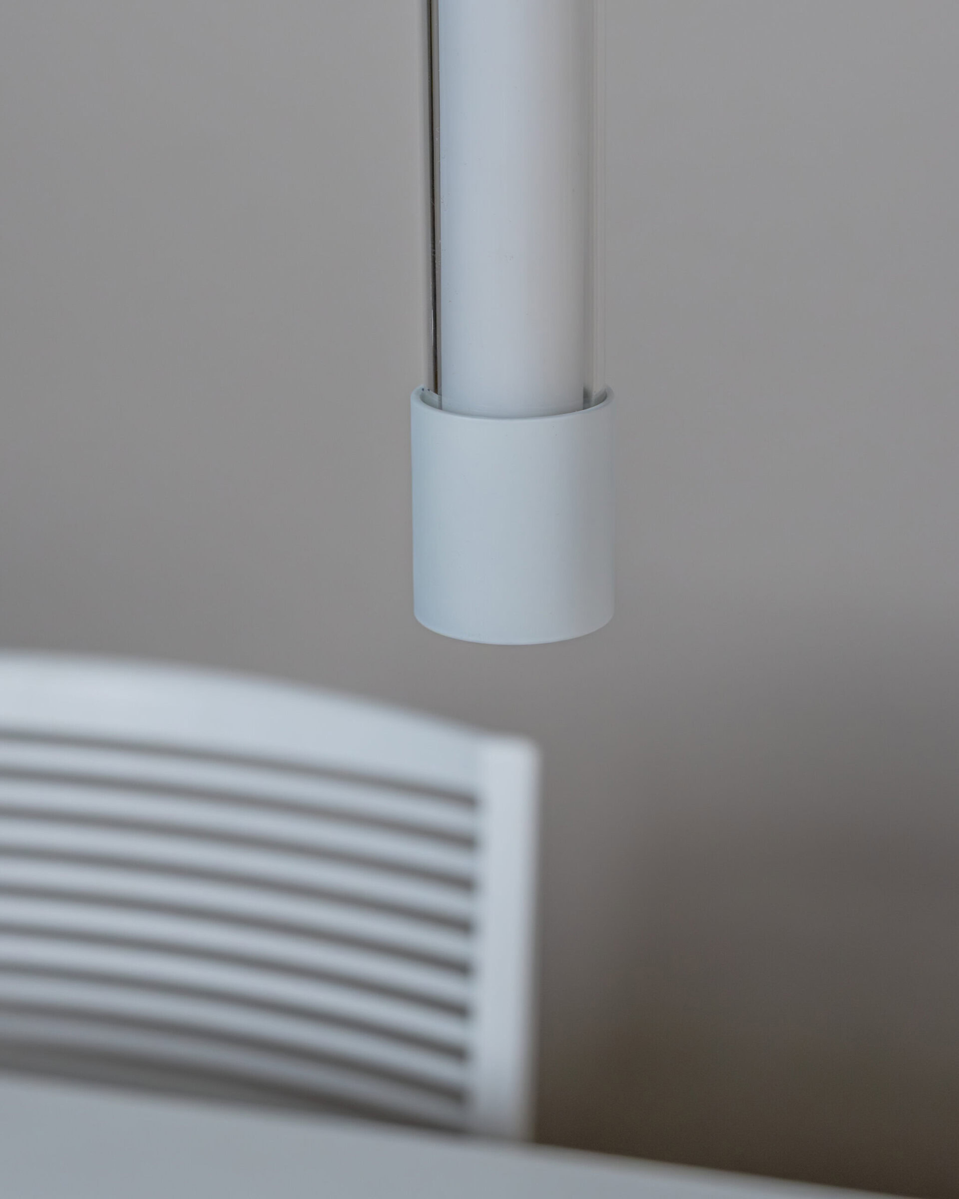 Semira is a single pendant lamp that combines a flexible LED tube enclosed in glass with refined aluminium finishes. Its design merges clarity with elegance, making it ideal for interiors that require subtle yet distinctive lighting.