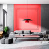Telstar is a pendant lamp inspired by the shapes of satellites and the aesthetics of the space age. Its distinctive geometric form – available in two sizes – creates a striking accent in any interior. The powder-coated aluminium body is paired with sandblasted glass, which softly diffuses the light from the integrated LED module. Perfect for dining rooms, living spaces, or commercial interiors.