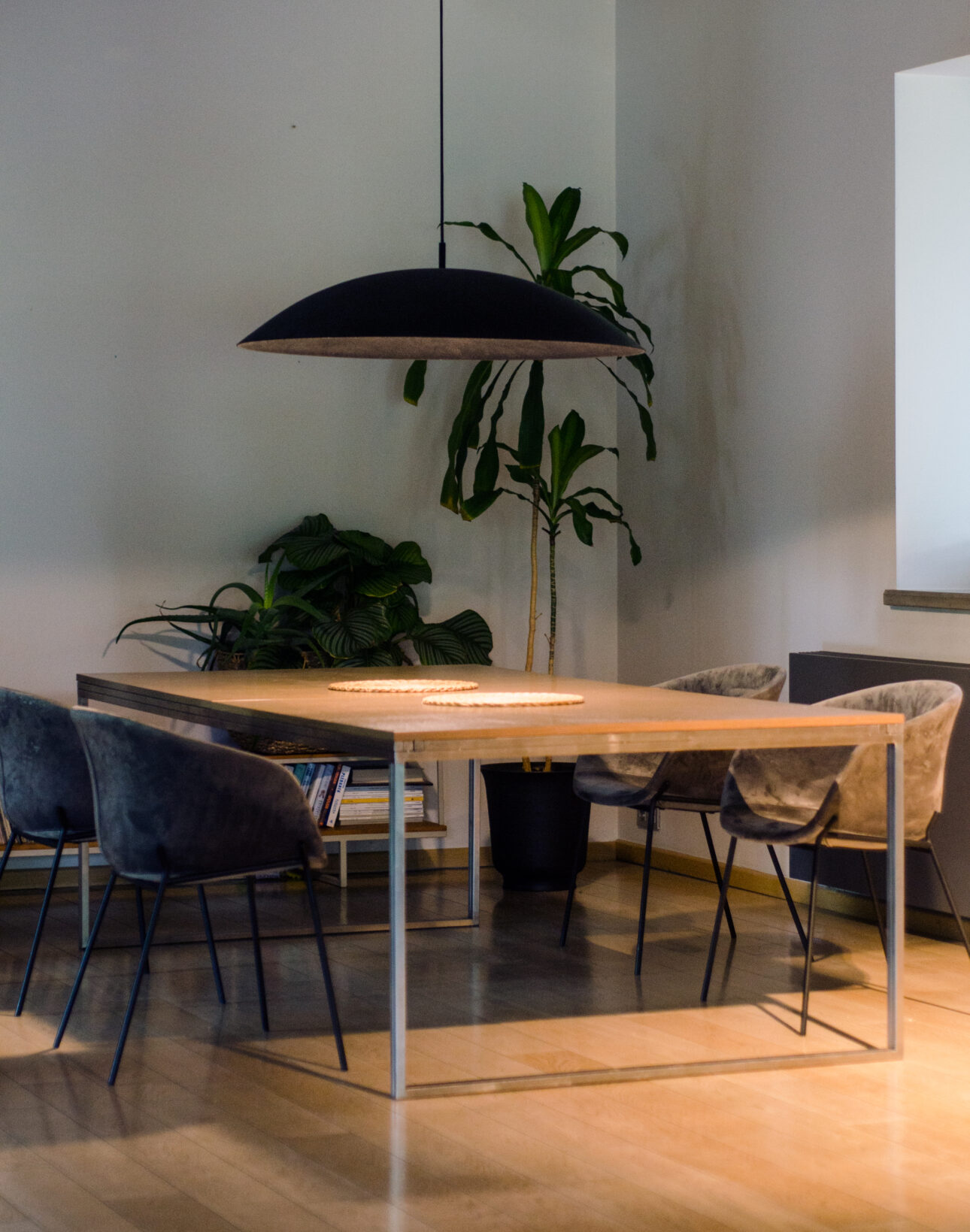 In the Telstar Velvet variant, the entire aluminium surface is covered with a velvet-textured finish, giving the lamp a softer visual character and elegant detail.