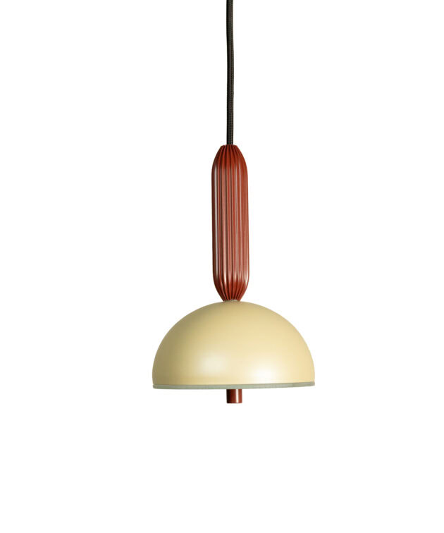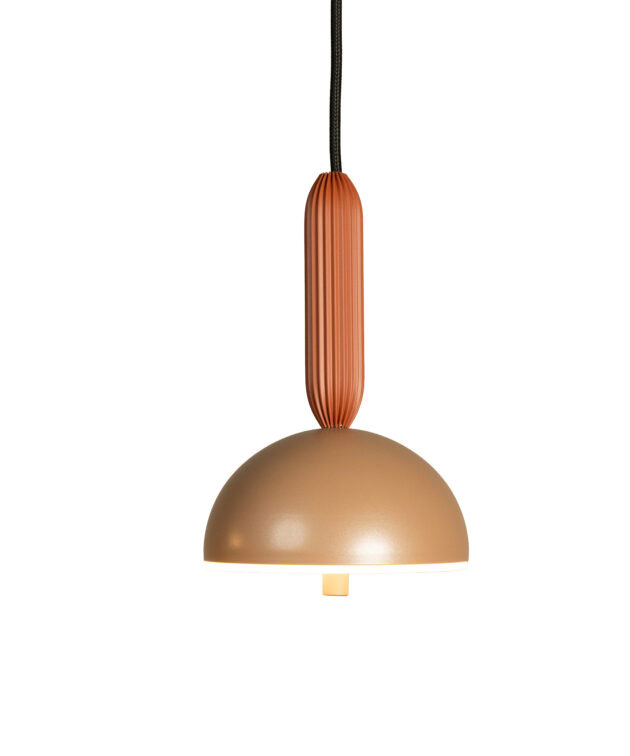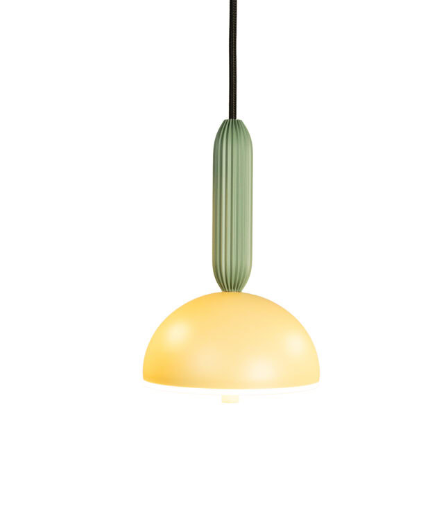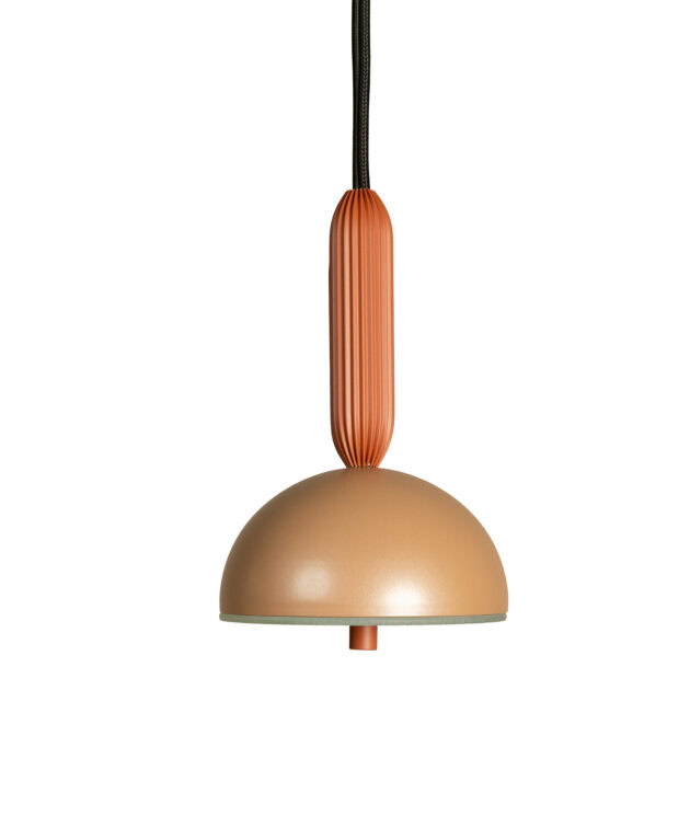 Vicky is a pendant lamp that combines the timeless shape of an aluminium shade with a bold, fluted brass accent. The lower part of the lamp is finished with sandblasted glass, gently diffusing the light and adding softness to the atmosphere. Each element – the shade, the brass ring, and the cap – can be painted in a custom colour from the LOFTLIGHT palette, allowing the lamp to be fully tailored to any interior.