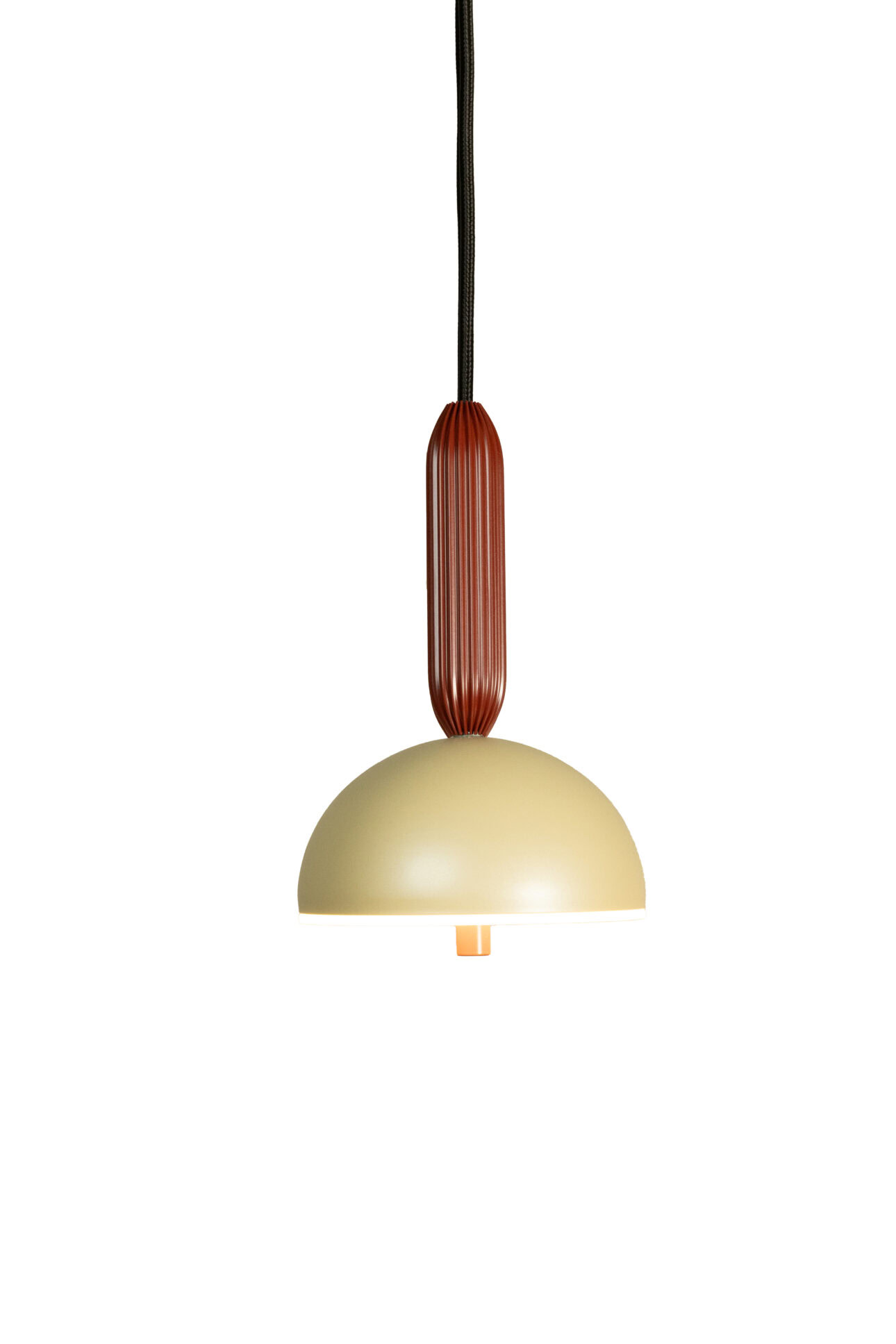 Vicky is a pendant lamp that combines the timeless shape of an aluminium shade with a bold, fluted brass accent. The lower part of the lamp is finished with sandblasted glass, gently diffusing the light and adding softness to the atmosphere. Each element – the shade, the brass ring, and the cap – can be painted in a custom colour from the LOFTLIGHT palette, allowing the lamp to be fully tailored to any interior.